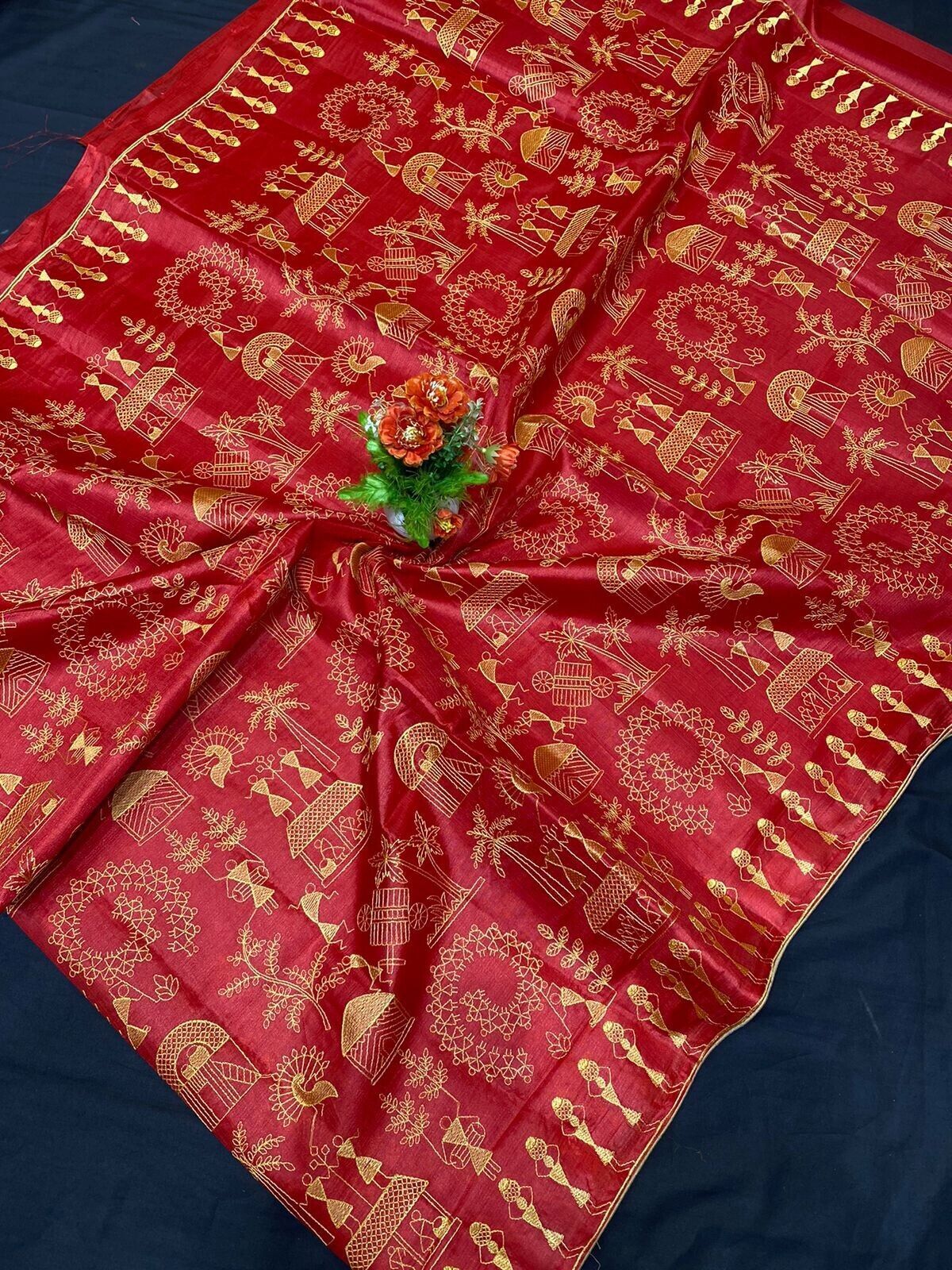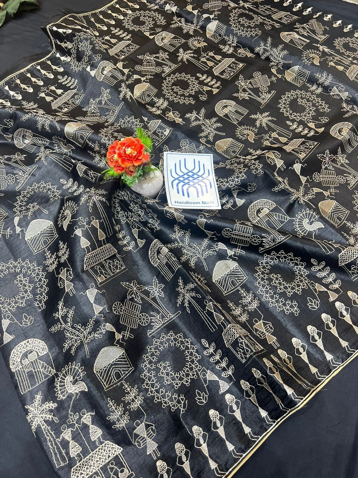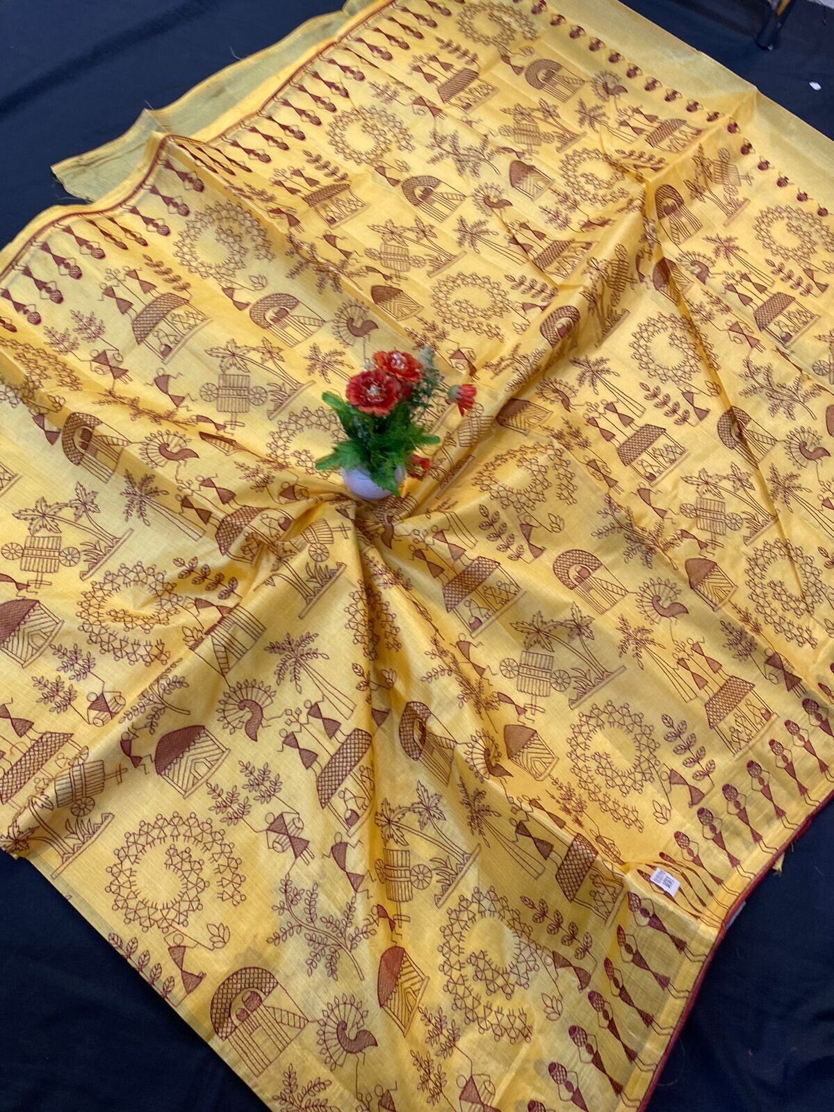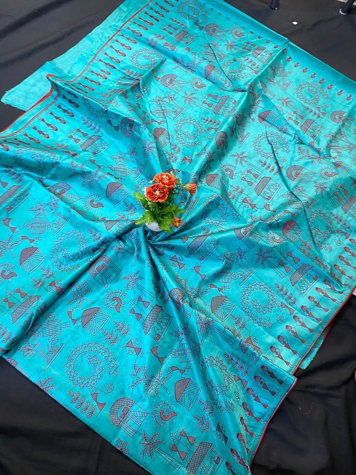 New FabIndia Style Handloom art embroidery all Tussar Pure Silk Saree sari