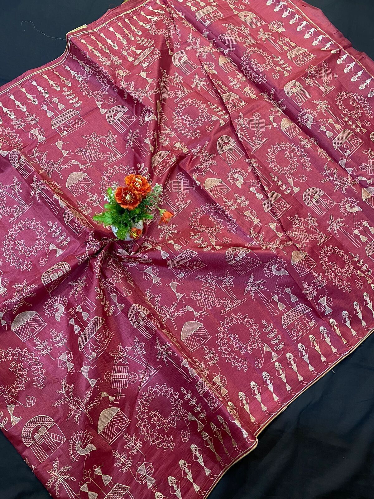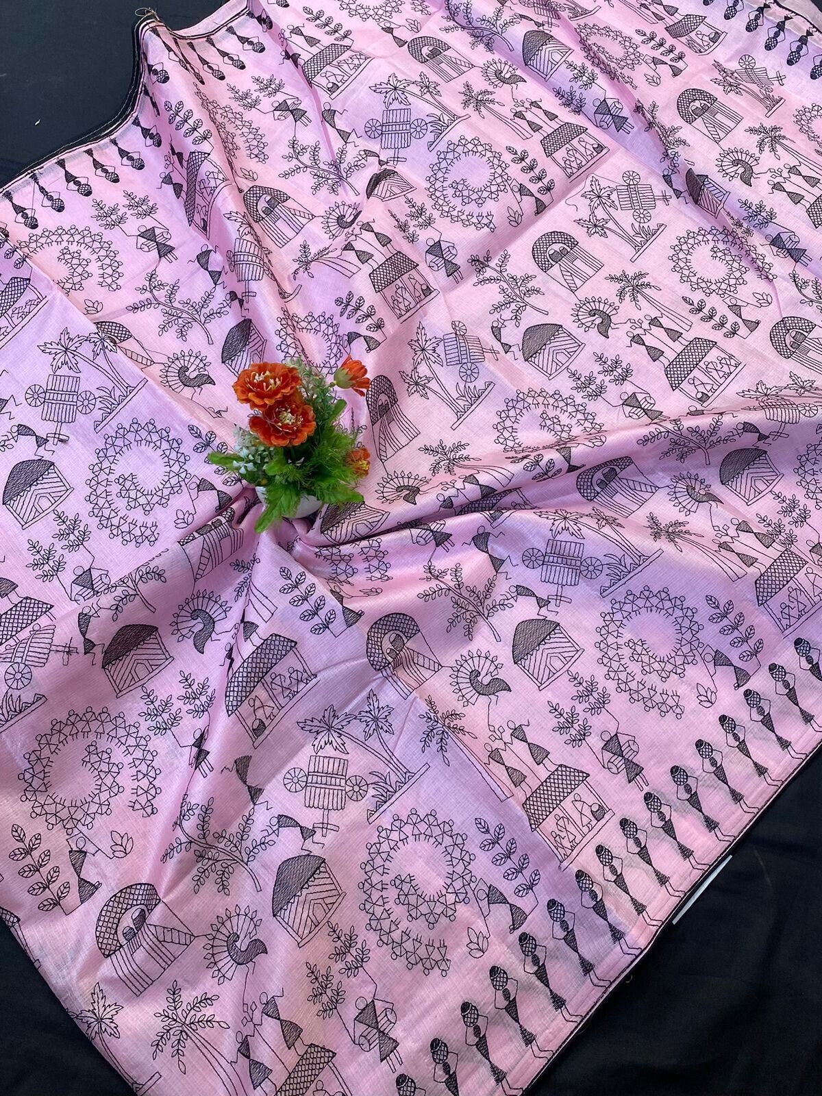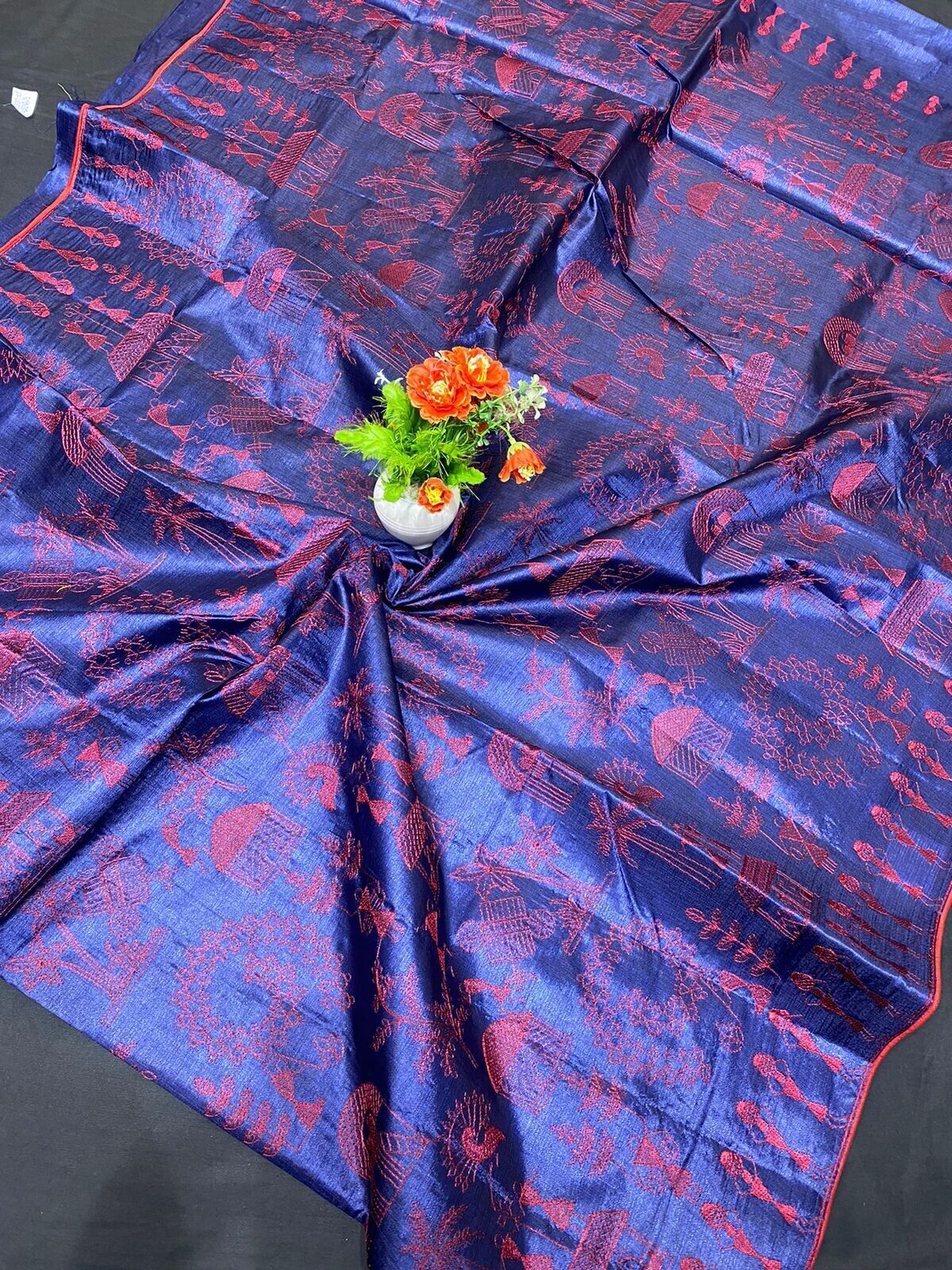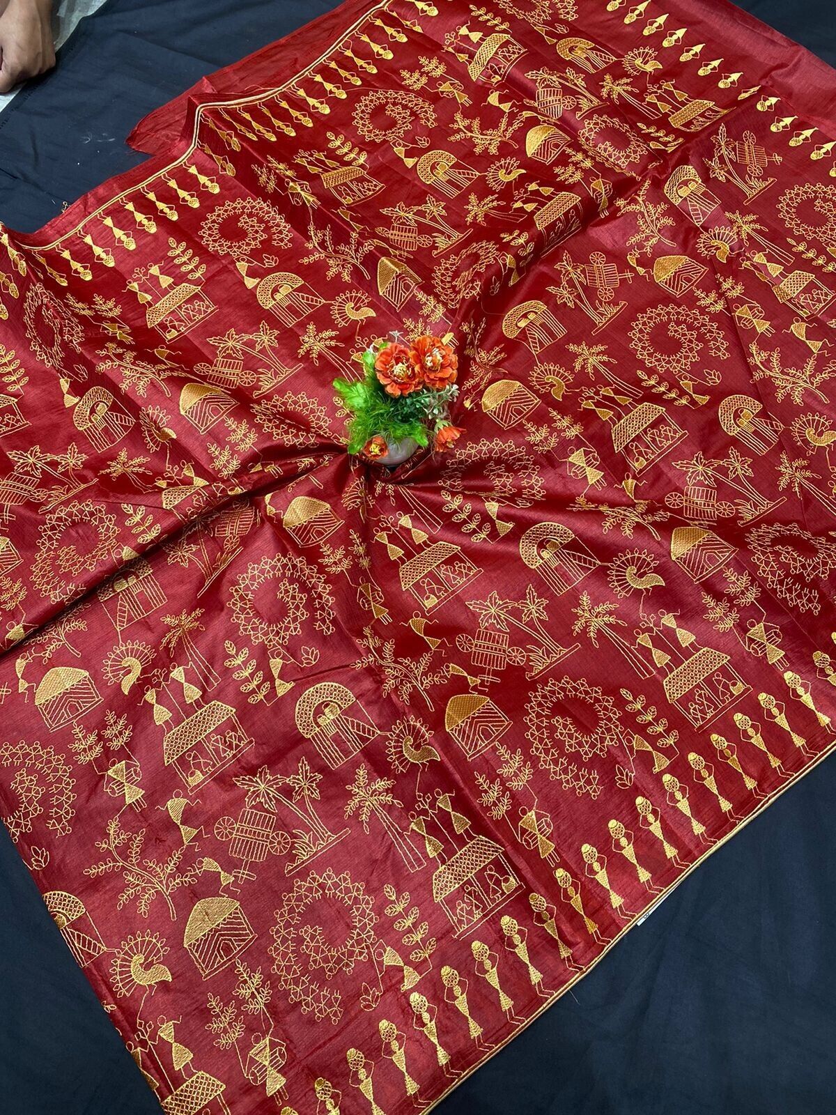New FabIndia Style Handloom art embroidery all Tussar Pure Silk Saree sari