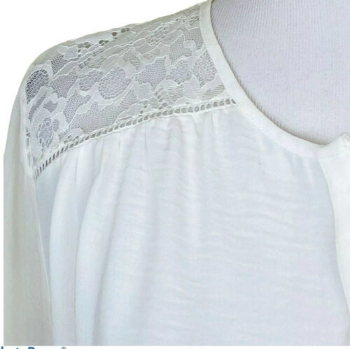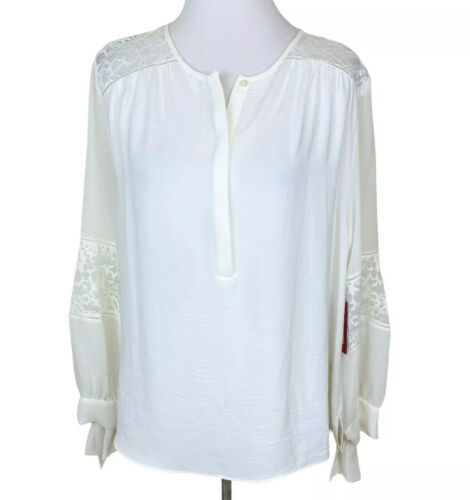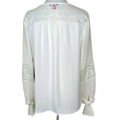 Vince Camuto Long Sleeve Blouse Top 3X Ivory Lace-Trim Tie-Cuff Rumple New