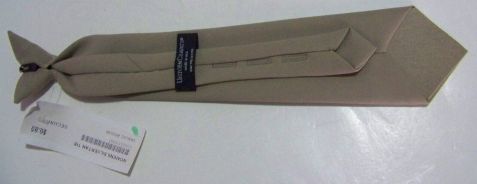 NEW!! Samuel Broom/Uniform Cravats Women's CLIP ON Silver Tan Tie 14" Long