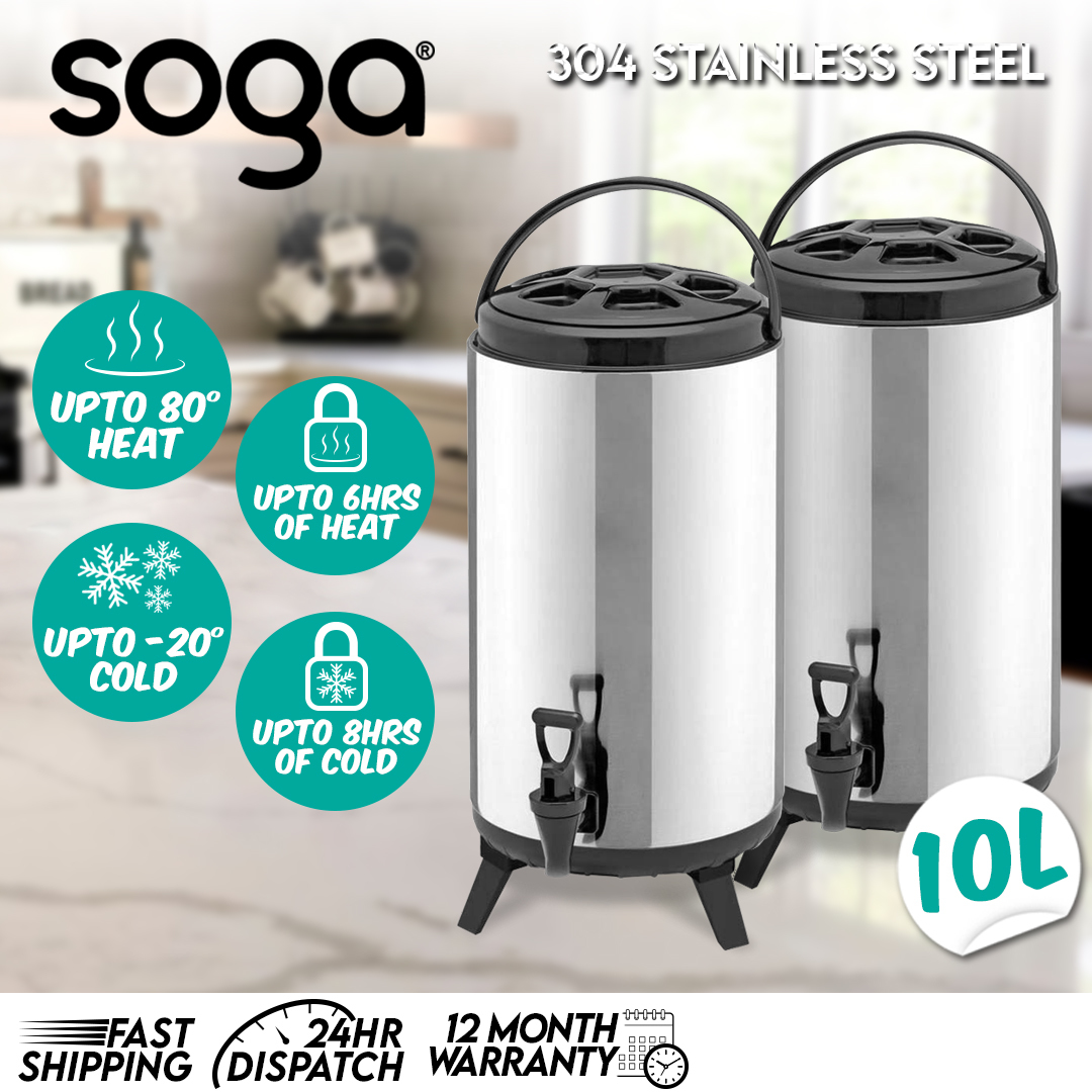 SOGA 2 x 10L Portable Insulated Cold/Heat Coffee Tea Beer Barrel Brew Pot With D