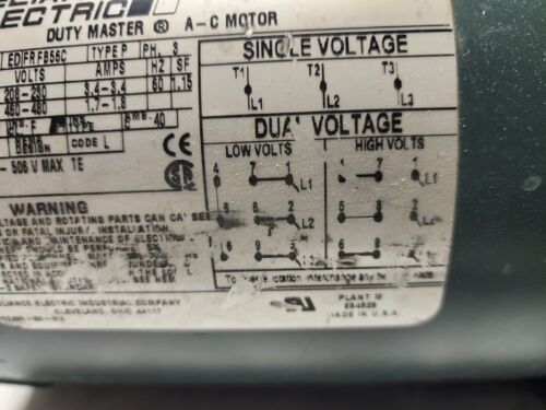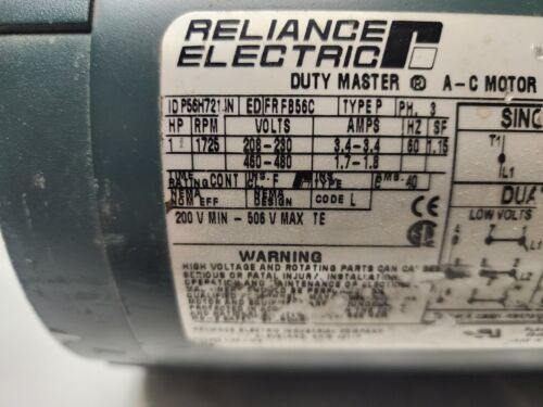 Reliance 1 hp. P56H721.IN 1725 rpm. Brake and 49 similar items