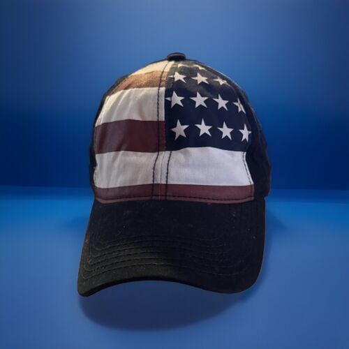 With its unisex design, this baseball cap is suitable for both men and women. The hat features a striped pattern and an American theme, making it a perfect addition to your wardrobe. Whether you're going to a sporting event or just running errands, this hat is sure to make a statement. Get yours today and show off your patriotic spirit!Please look at our store for unique collectibles and quality vintage items.