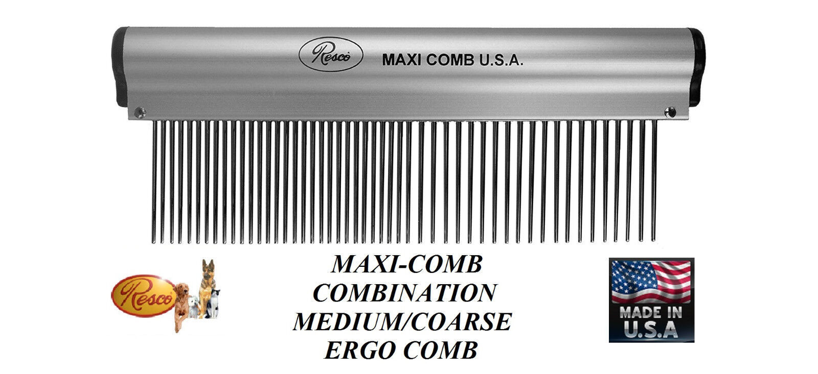 RESCO MAXI-COMB Ergonomic Aluminum&Stainless Steel Long Pin-Medium/Coarse # 80