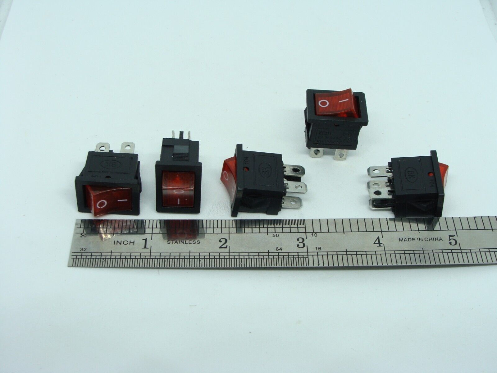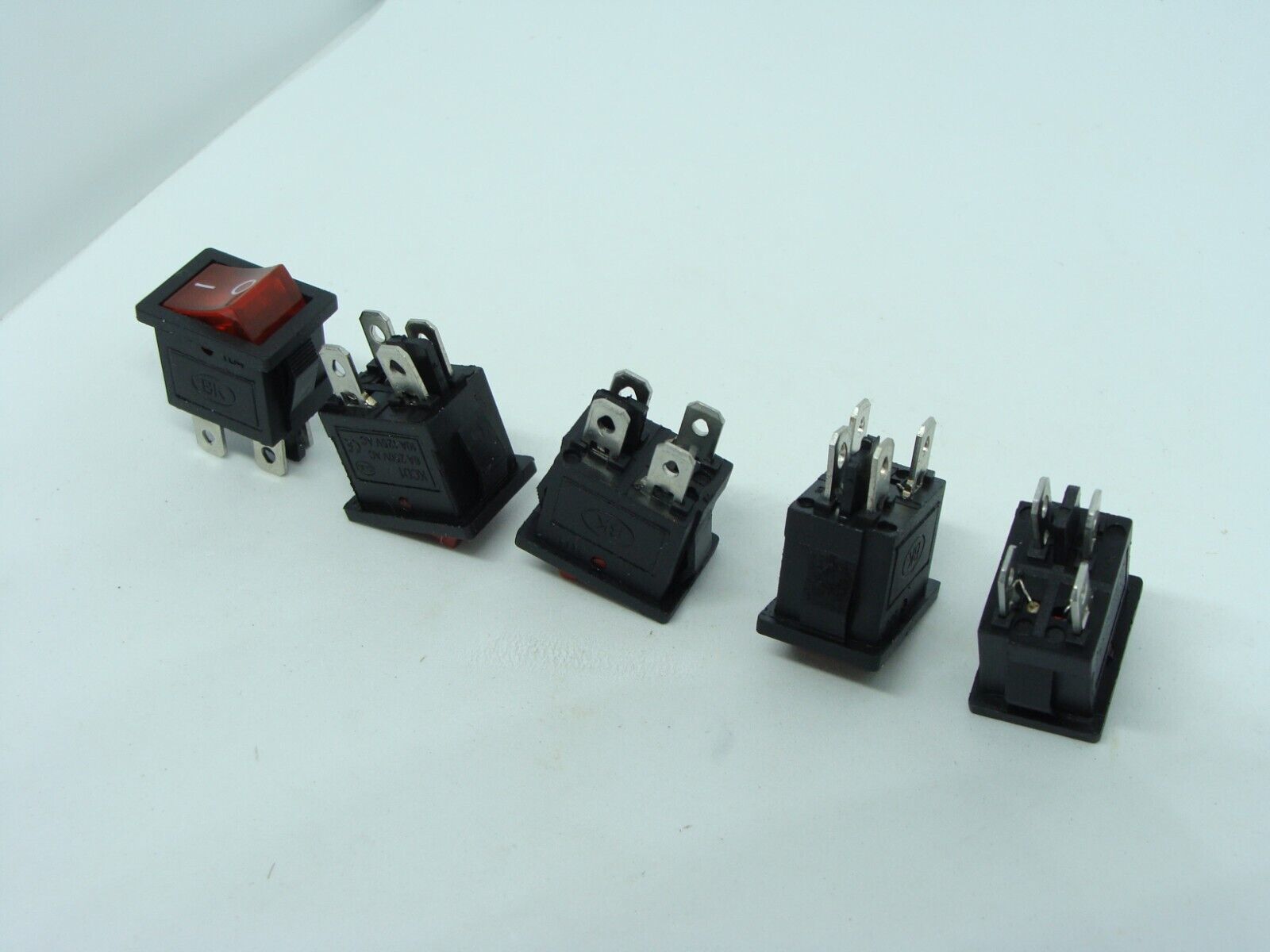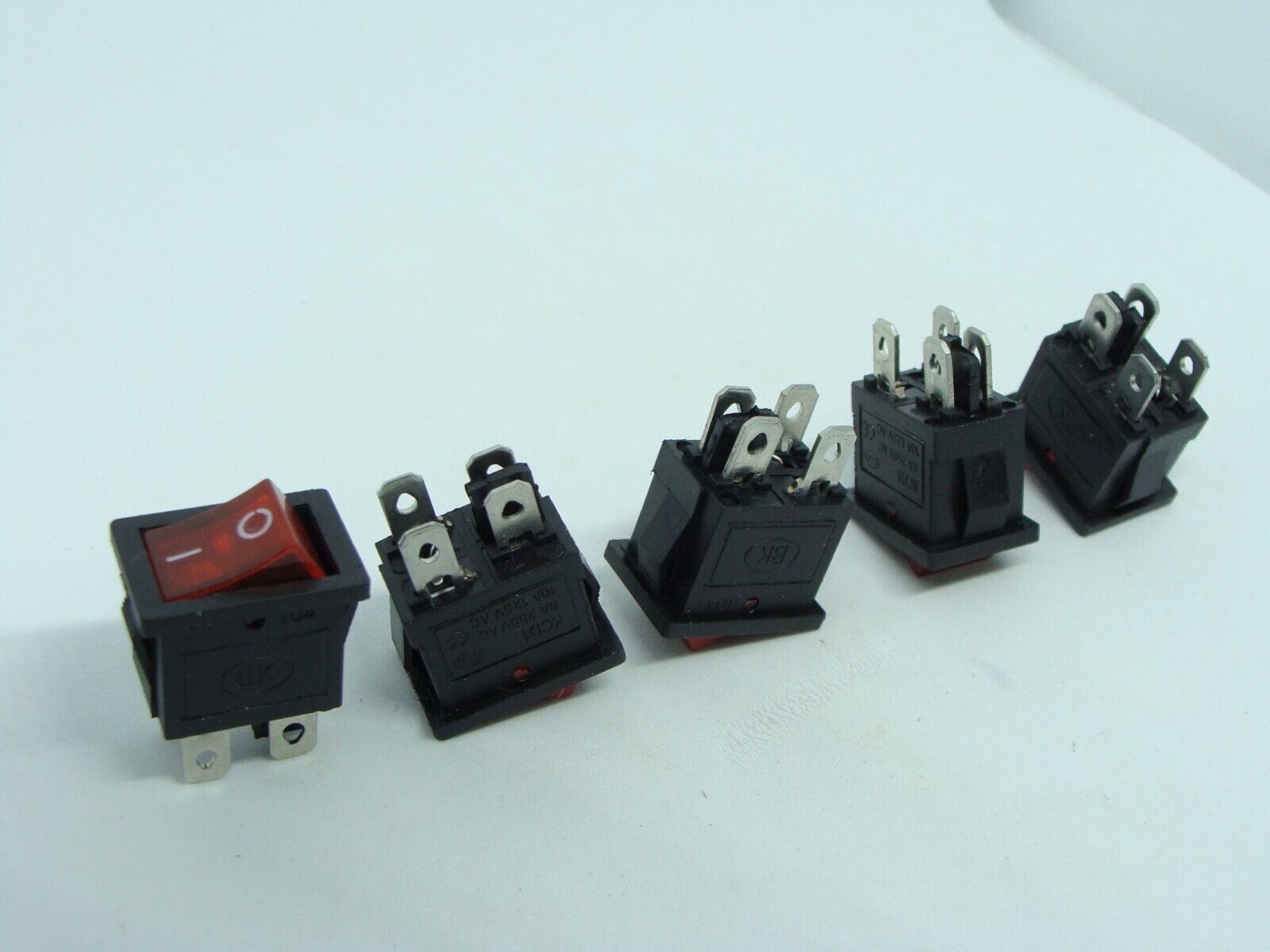 5Pcs Pack Lot KCD1 Power Rocker Button Switch 6A 250V 10A 125V AC 4 Pins Red LED