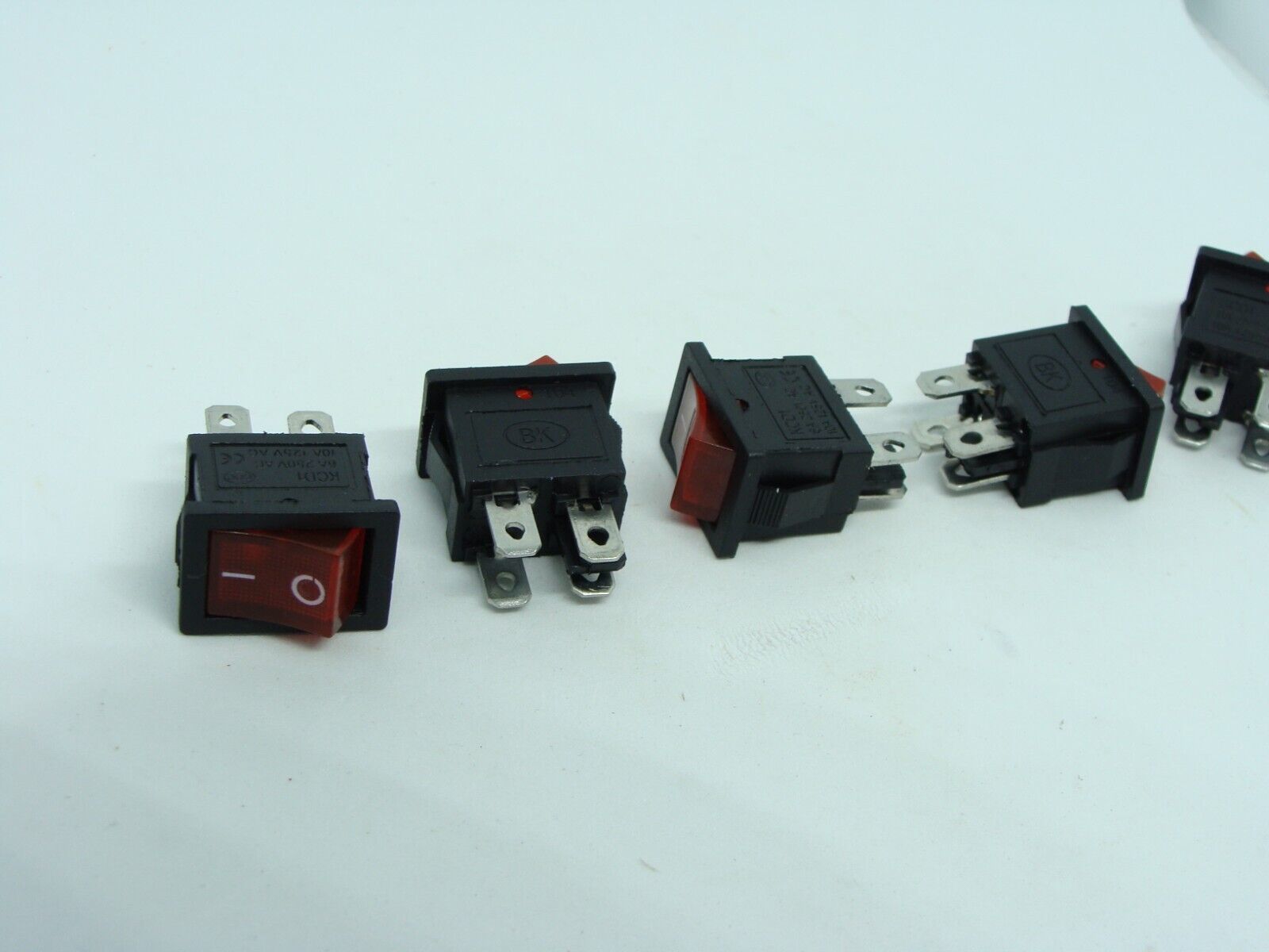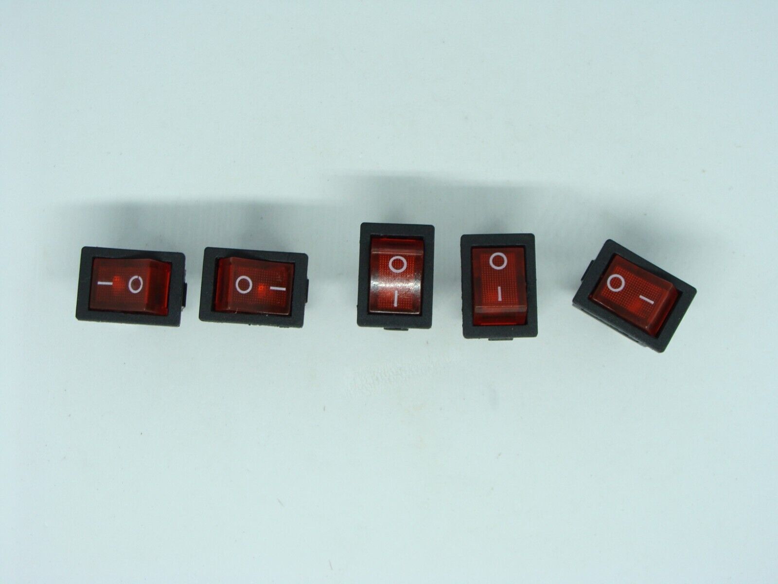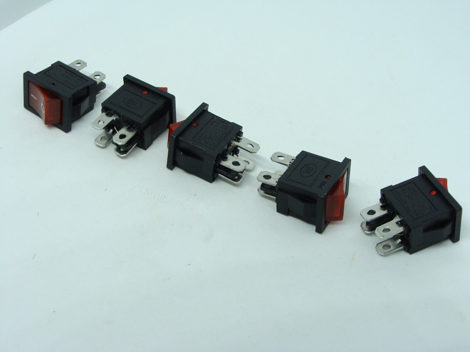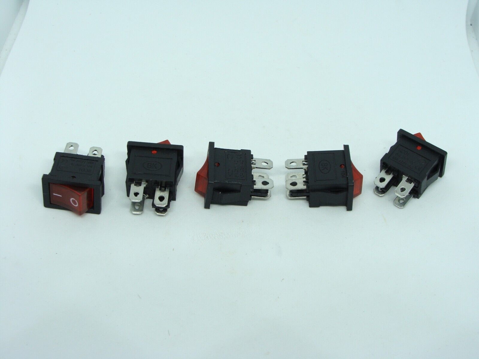 Pack of 5, KCD1 6A 250V AC 10A 125V AC CQC BK CE, Red LED, 4 Pins, 15x21mm Rocker Switch.