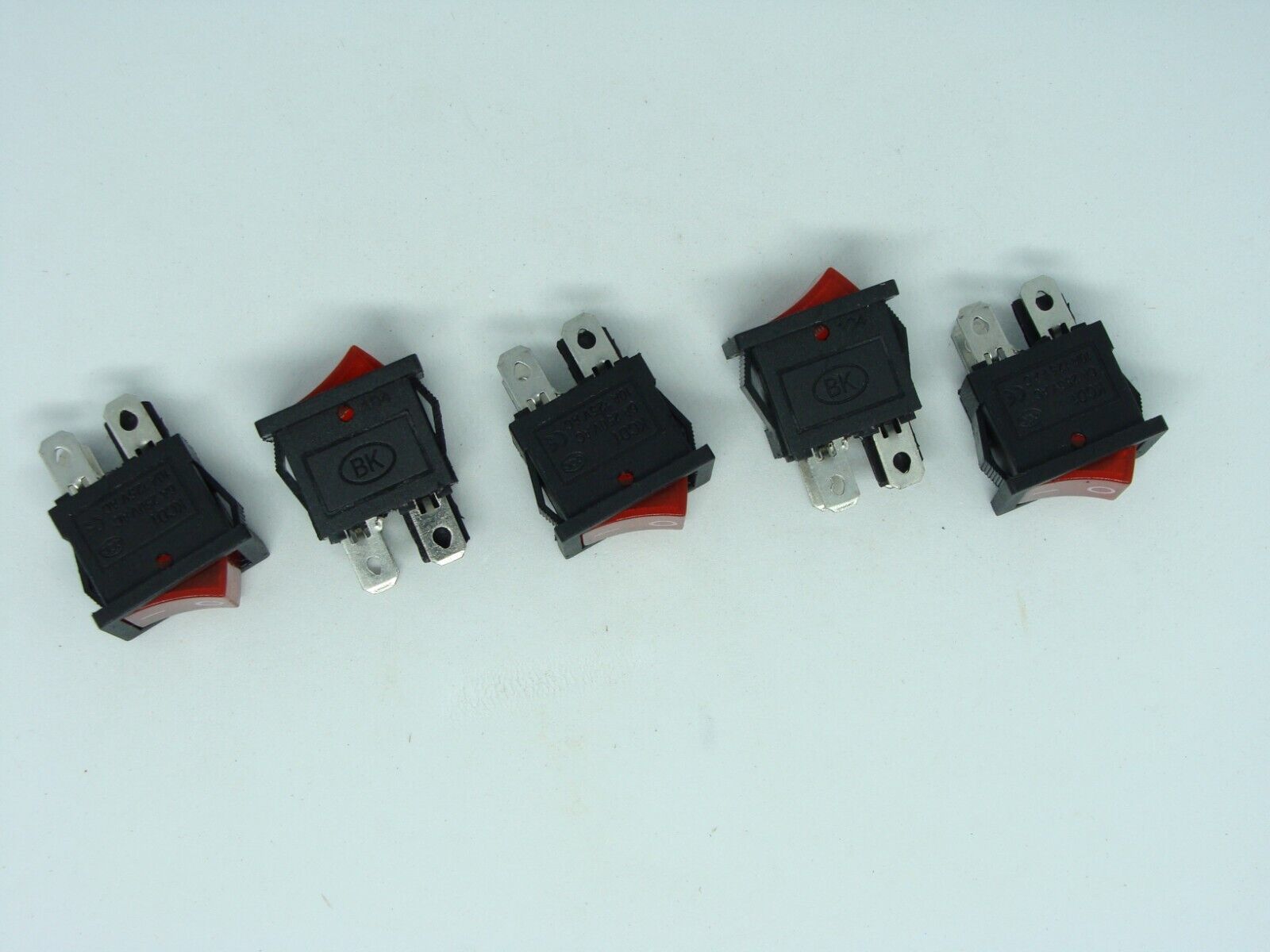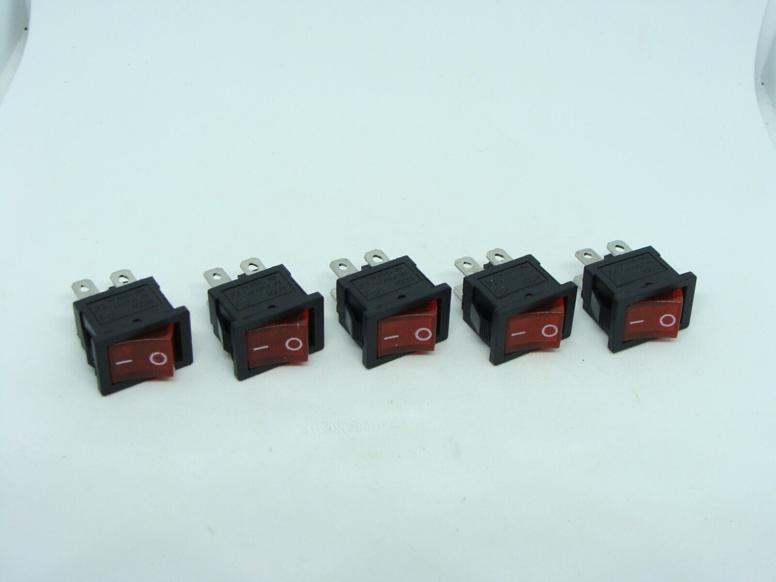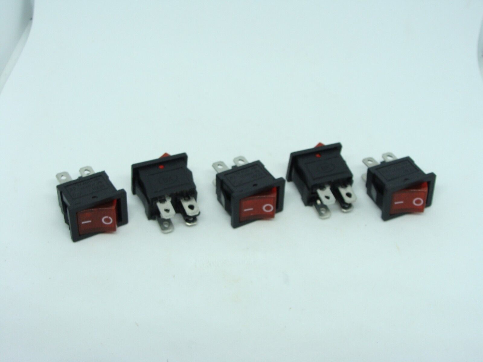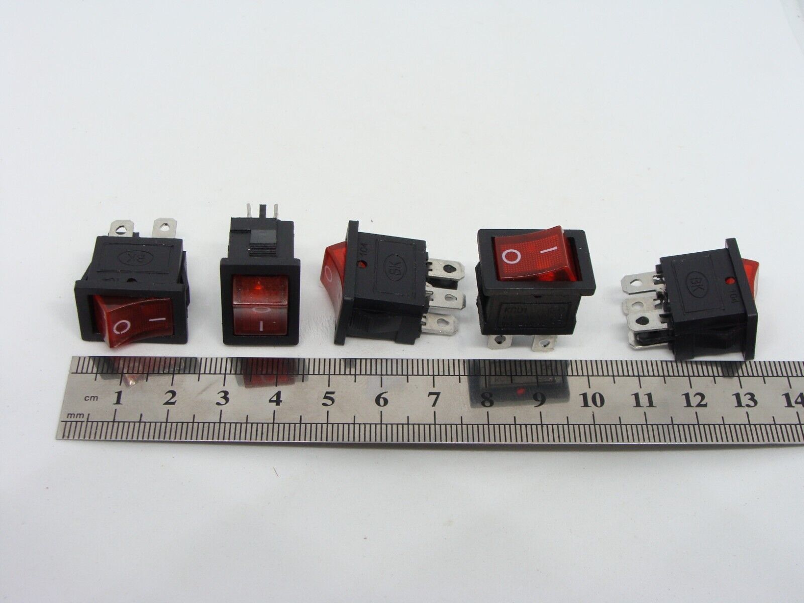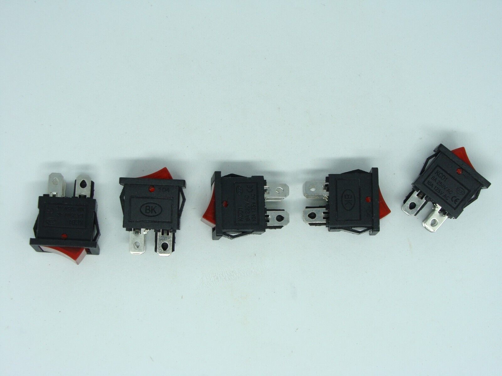Pack of 5, KCD1 6A 250V AC 10A 125V AC CQC BK CE, Red LED, 4 Pins, 15x21mm Rocker Switch.