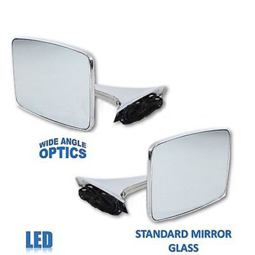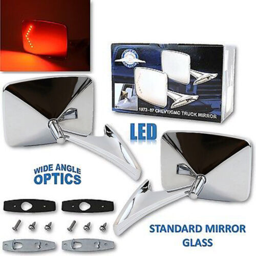 73-91 GMC Truck Chrome Square LED Turn Signal Convex Rear View Door Mirrors Pair