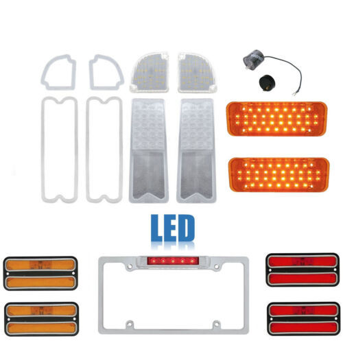 71-72 Chevy GMC Truck LED Clear Amber Tail, Back Up, Park, Side Marker License Light Lamp Lenses w/ Flasher Gaskets Set