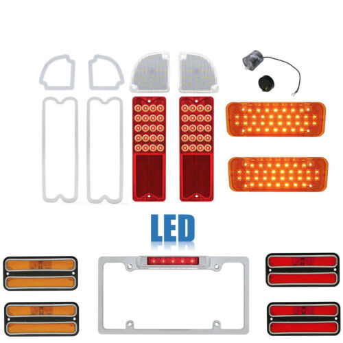 71-72 Chevy GMC Truck LED Red Amber Tail, Back Up, Park, Side Marker License Light Lamp Lenses w/ Flasher Gaskets Set
