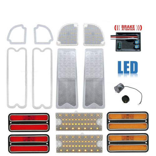 69-70 Chevy GMC Truck LED Clear Tail, Back Up, Park Side Marker Light Lamp Lenses w/ Brake Attention Module, LED Flasher Gaskets Set
