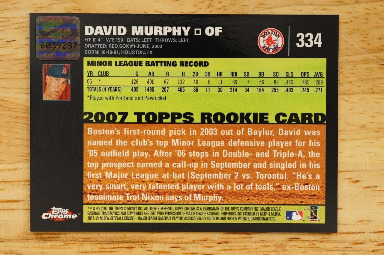 2007 Topps Chrome #334 David Murphy Rookie Auto Card Boston Red Sox Baseball