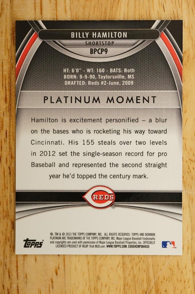2013 Bowman Platinum Prospects Chrome Blue Refractor 83/199 Billy Hamilton #BPCP9