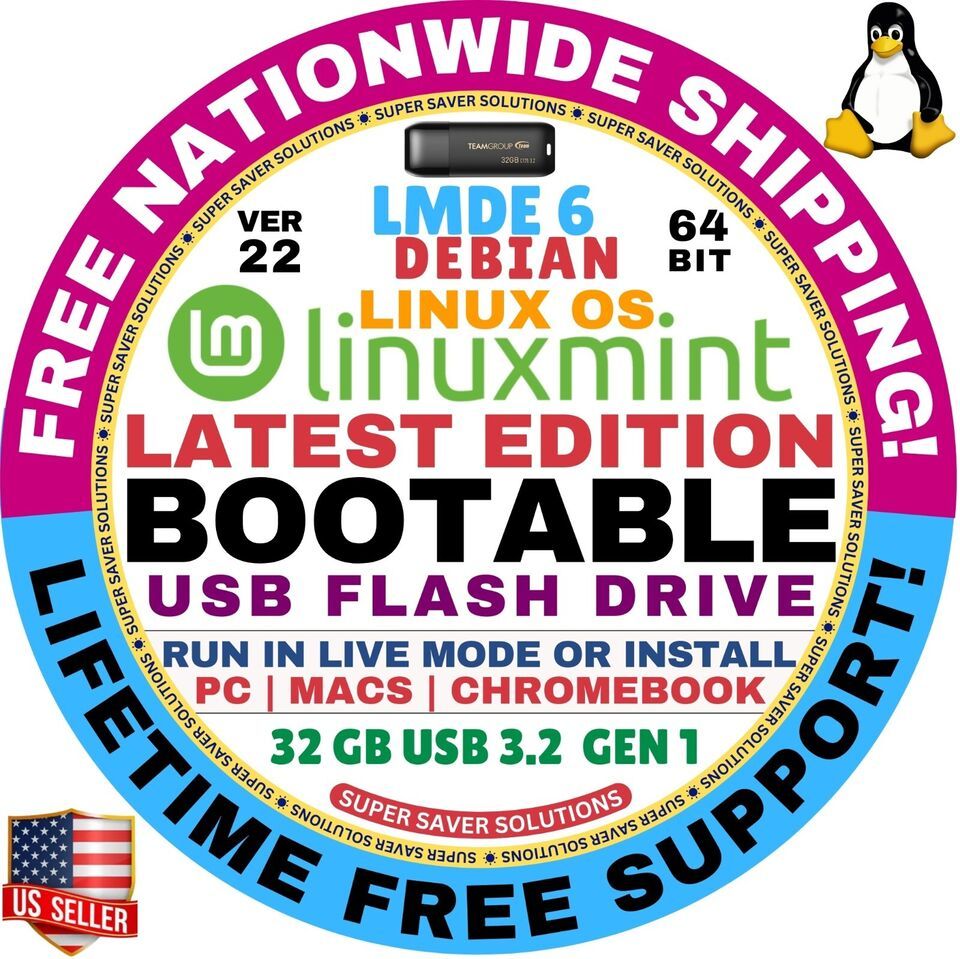 Linux Mint 22 Usb Faye LMDE-6, 64-Bit, Live and 50 similar items