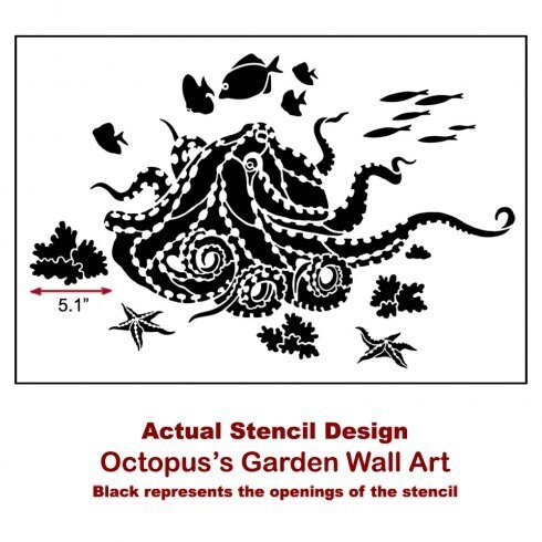 Another amazing Octopus Stencil designed by our good friend visionary artist Tatyana Kiselyova. This Octopus?s Garden stencil will look awesome in your home. Featuring mysterious Octopus and his sea creature friends on a coral reef. It?s so much easier to use a stencil than to install an Octopus wallpaper or an Octopus decal. Nautical stencils and nautical designs are a popular trend and this Octopus wall art stencil is perfect for beach home decor or a nautical nursery.