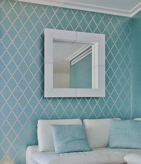 Very classy allover stencil Harlequin Trellis. This stencil looks great in both traditional and modern decor settings. Try it for your next DIY wall painting project!