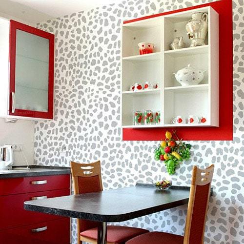 We love all big (and small) cats! Our trendy stencil Leopard Skin brings gentle feline beauty to your interior, with a modern twist. Animal skin patterns are making a comeback, this time in bold colors! This pattern will make a stunning accent wall in any room. It will look perfect in living room, bedroom or even a nursery. It also looks great stenciled on rugs, floors, pillows, furniture and curtains! Allover wall stencils are super trendy and are sure to spice up any contemporary interior. We offer this pattern in Large and Small scale. Choose the right scale for your project: bigger spots may look more appropriate in larger spaces, and smaller cozier places will benefit from a tighter, smaller scale.