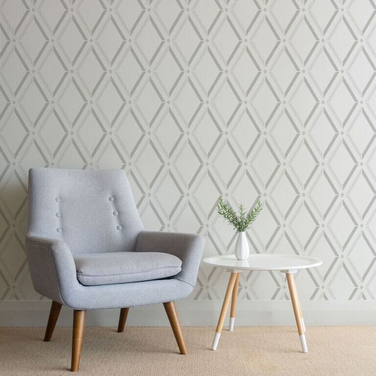 This beautiful and sophisticated Diamond trellis stencil is so classy! You can use this elegant wall design on a dining room wall, in a hallway, in a bath, or as a bedroom accent wall. Also you can stencil it in one color for a uniform effect, or do a two-color look that makes the trellis look 3D! So versatile! Trellis patterns are having a huge comeback and this wall stencil is right on trend. Consider using a stencil for wall painting project instead of purchasing costly and difficult to install trellis wallpaper.