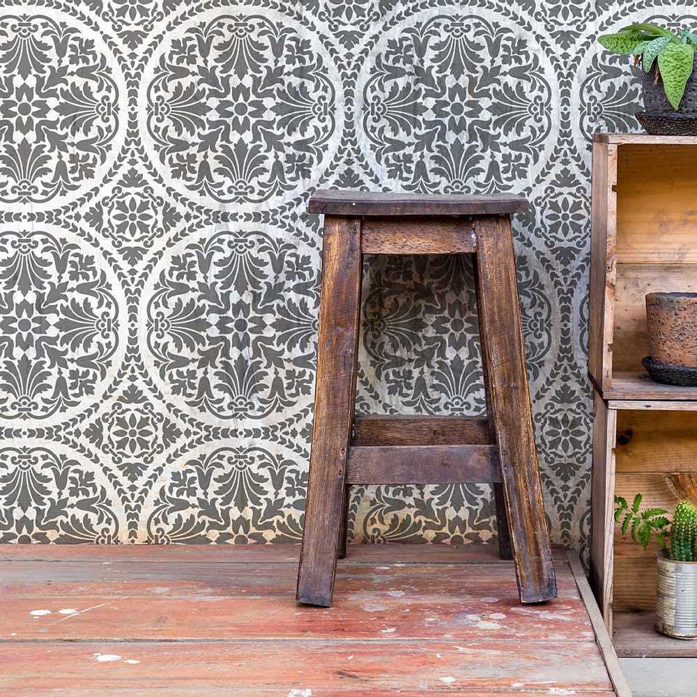Tile Stencils are incredibly popular in today's DIY decorating! Our Penelope Tile stencil pattern is a perfect money saving alternative to the popular but pricey cement tiles, or wallpaper. You can stencil this beautiful pattern on the wall, or on your floor. You can stencil right over your old dated tile floor or an ugly linoleum! With our Tile stencils, it is easy to create a dramatic tile wall or floor.