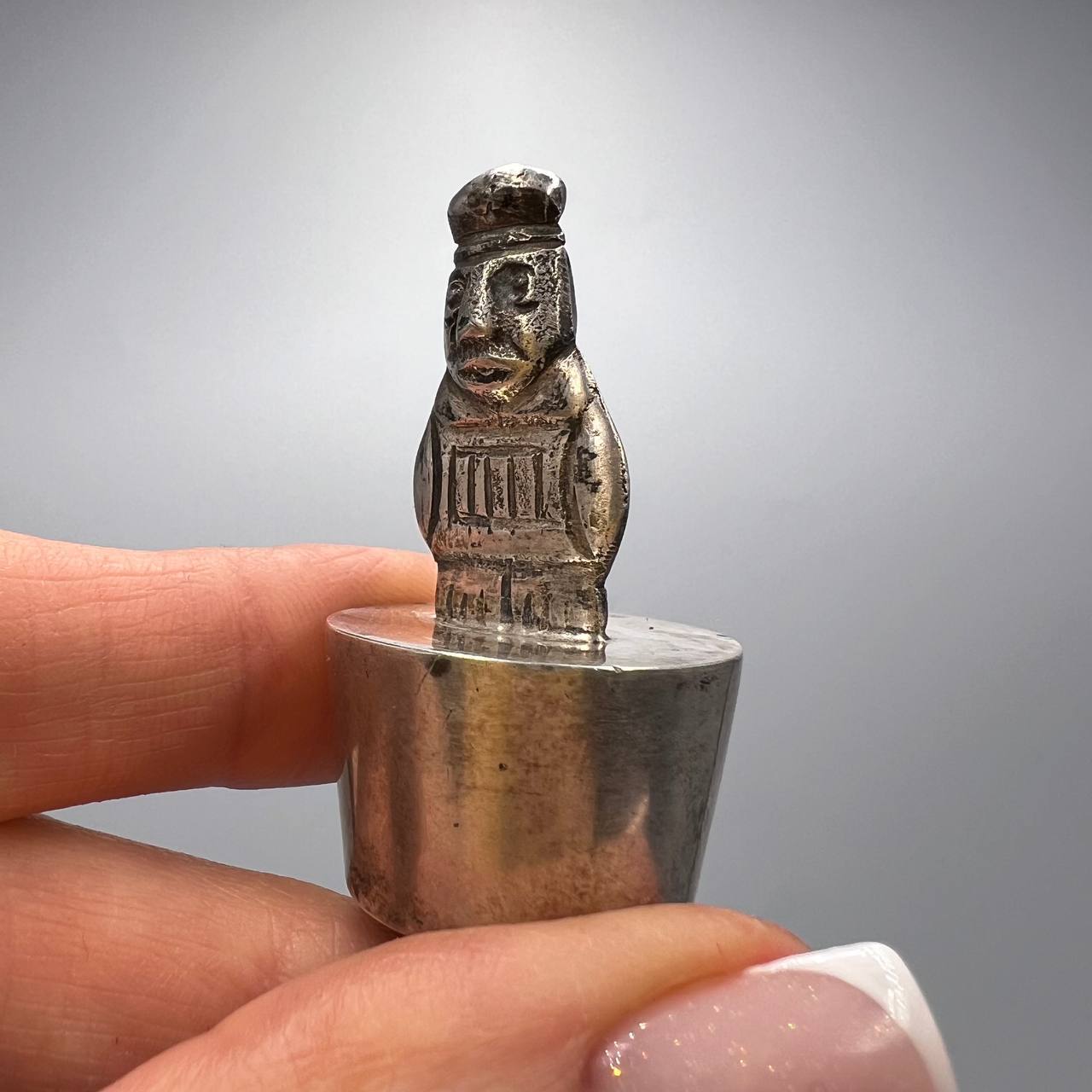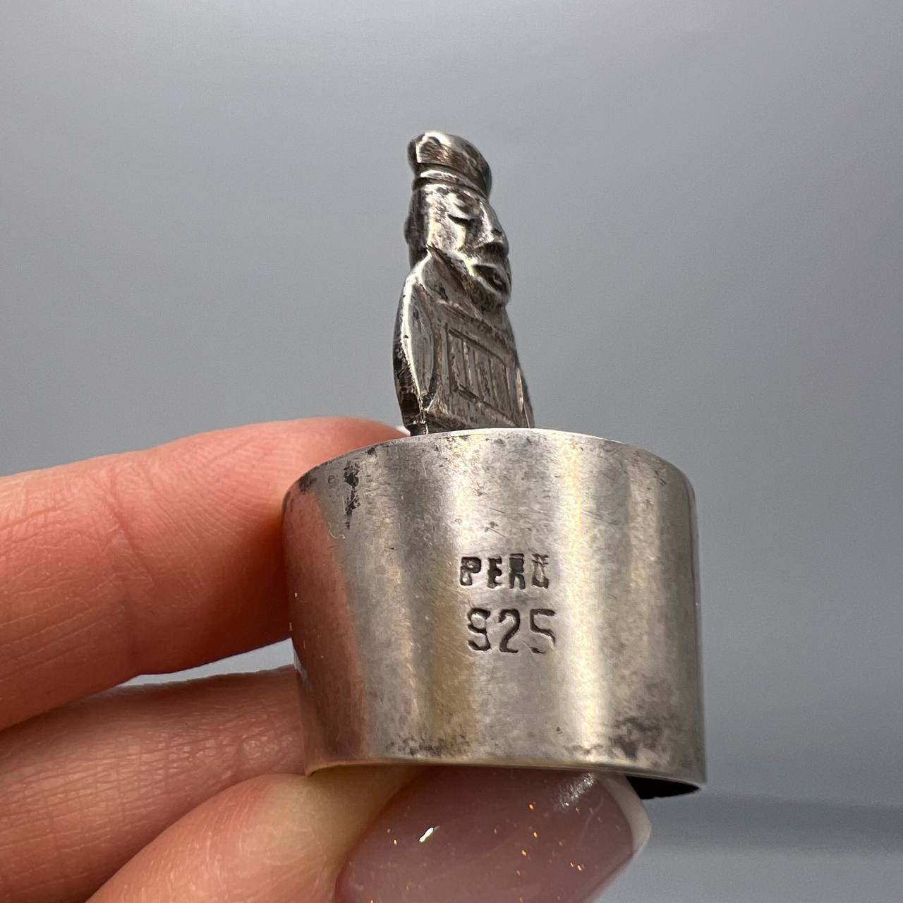 Vintage Miniature Sterling Silver 925 Figure Statue Peru Inca Totem Cap on the Bottle
