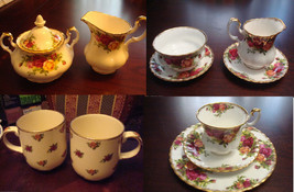 COUNTRY ROSES BY ROYAL ALBERT CREAMER, SUGAR, CUPS SAUCER PLATES