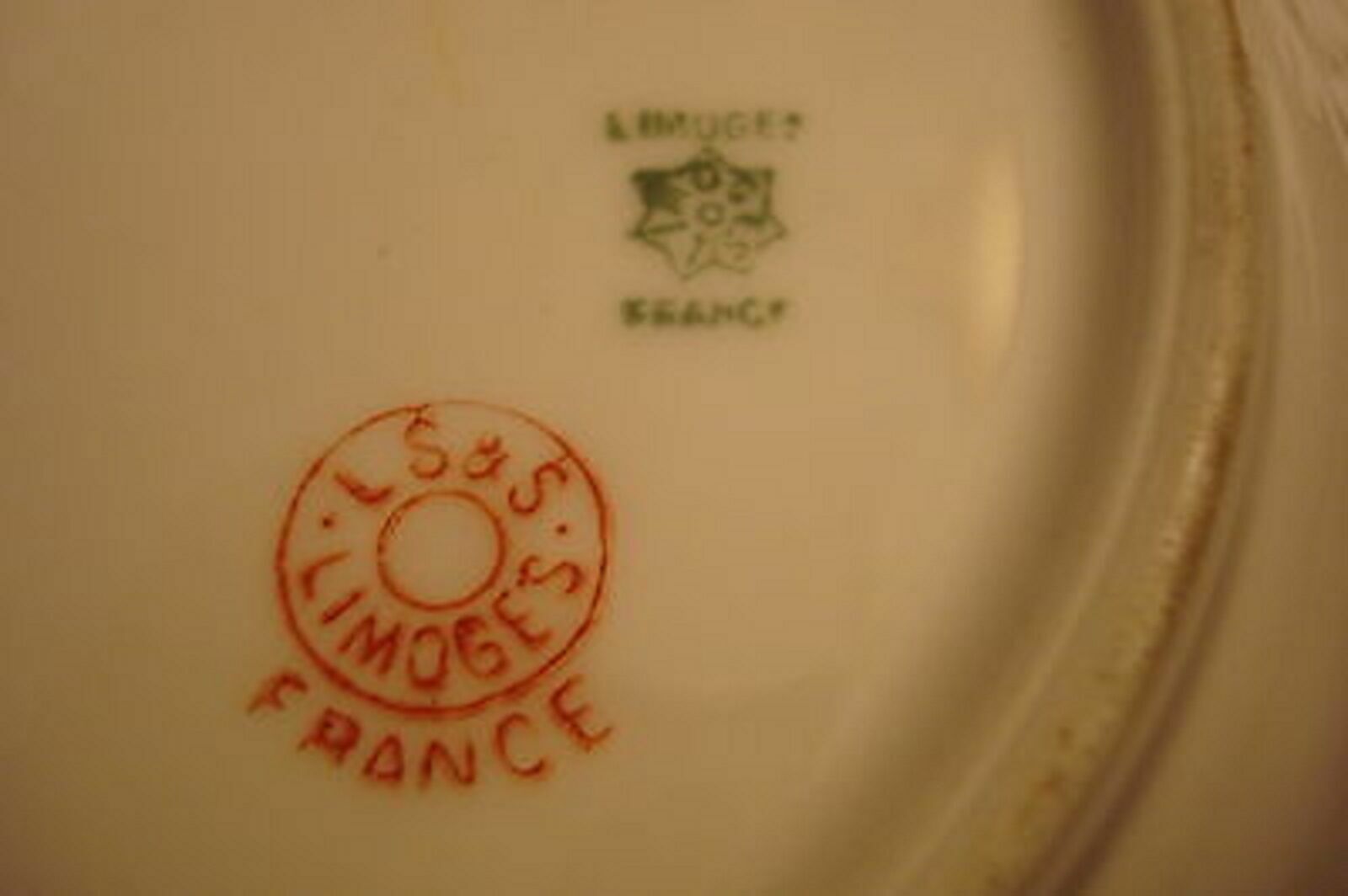 1- Limoges France signed bowl decorated with flowers. 6 inches diameter. It has a light hairline, not noticeable from the front and a fleabite not noticeable from the front either. Look at the pictures. Priced accordingly. [*7i]
