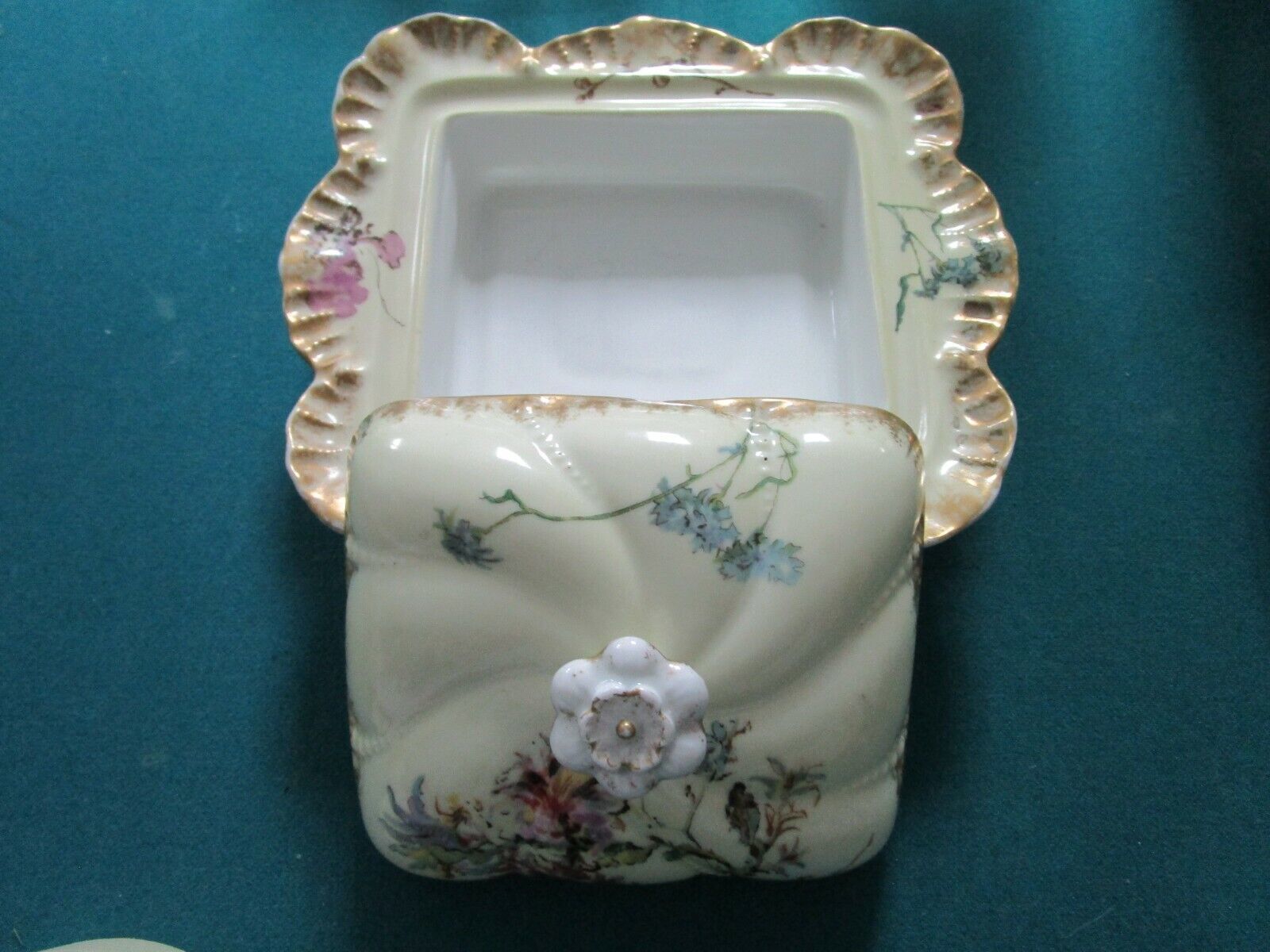 4- SQUARE FLORAL COVERED TRINKET BOX BOWL 4 X 9 X 7 1/2" [*GERMAN2RACKII]3-
