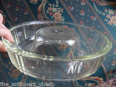 Glasbake Clear QUEEN ANNE c1942 heat resistant Bundt Cake Pan Jello Mold 8-3/4" wide and 2-1/2" tall, very good condition, no damage