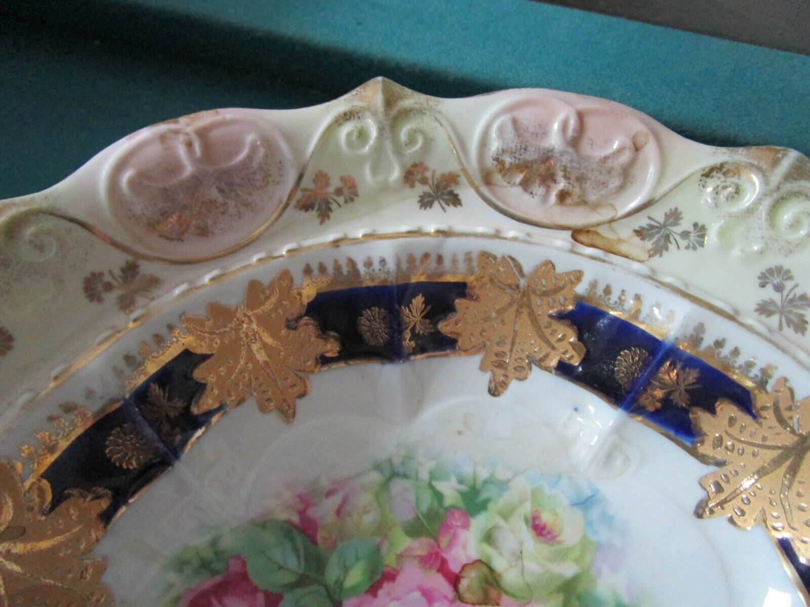 IPF GERMANY ANTIQUE CERAMIC BOWL GOLD AND ROSES 3 X 10" ORIGINAL