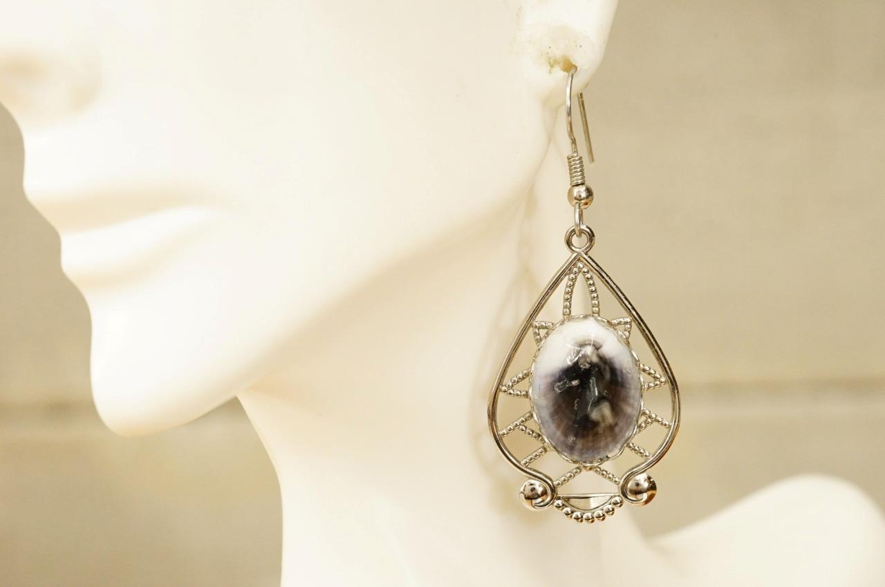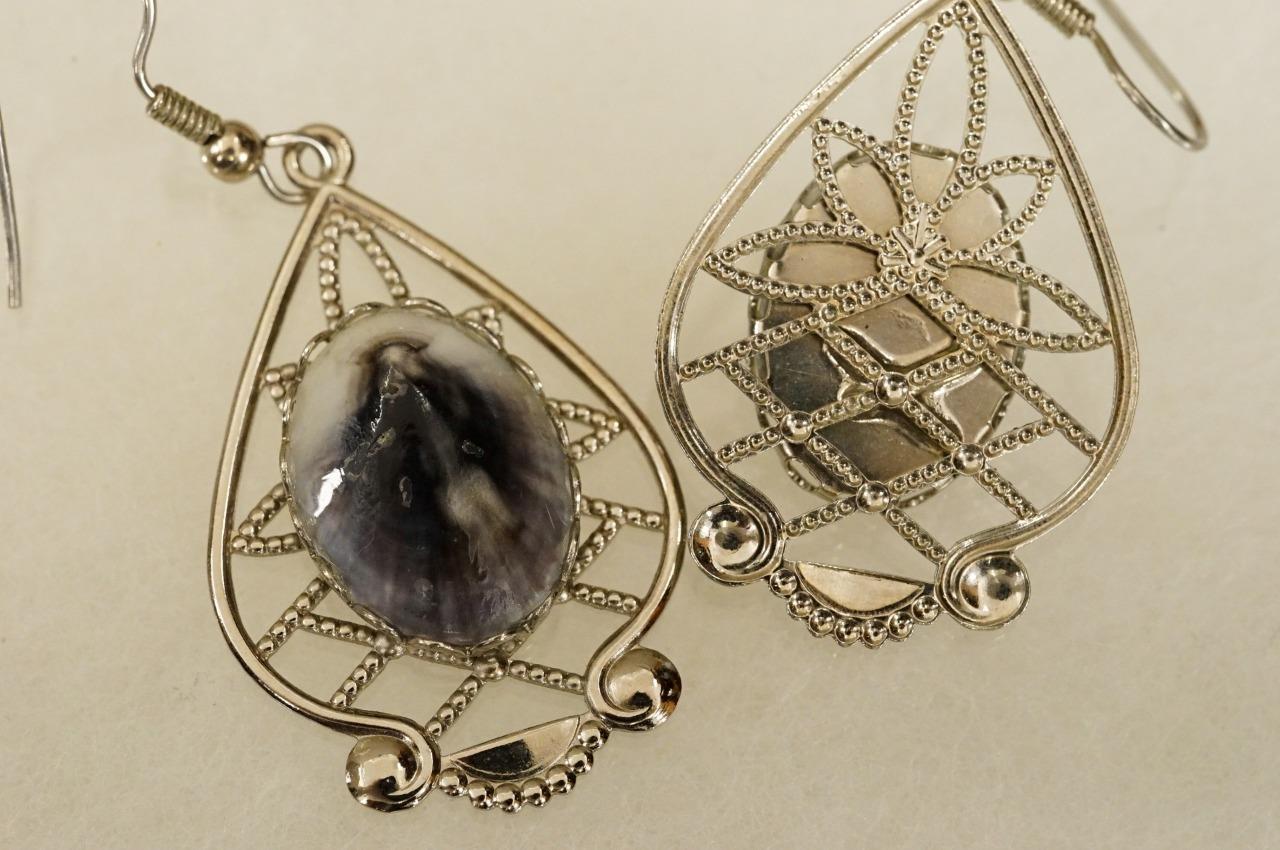 Vintage Costume Jewelry Limpet Shell Turtle Brooch Pin Earring Set Silver Tone. Measures 2-1/8" along the brooch pin. The matching earrings are 1.5" long on the pendant. 2" total drop. Pierced style. The shell has tones of purple and gray. Smoke and pet odor free.