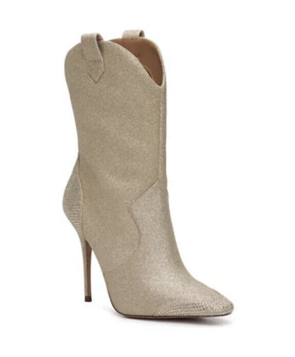 Jessica Simpson Cicee Stiletto Western Boots Champagne Micro Flash Sz 7 Sparkle