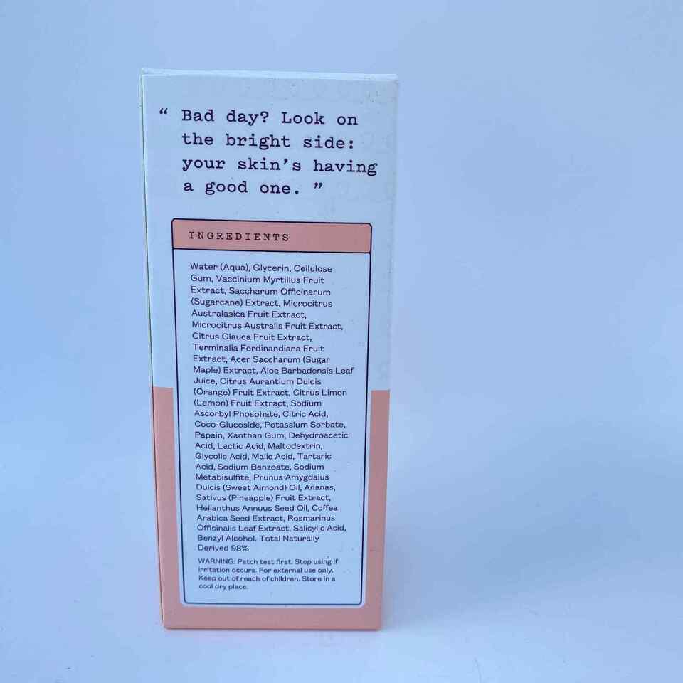 Ready to get active with your skincare? My Brightening Vitamin C Mask is a multitasking active face mask, made with vitamin C-rich Kakadu Plum to reveal your brightest glow. I gobble up dead skin cells with papaya pineapple extract and glycolic acid. My salicylic acid goes deep into pores to clear them out. Lactic acid hydrates and plumps to keep skin juicy. I?m a gentle yet effective exfoliant with a sophisticated formula and a down to earth price tag. I only take 5 minutes every 2-3 days to work my magic on hyperpigmentation, scarring, and fine lines. Vegan and cruelty-free.