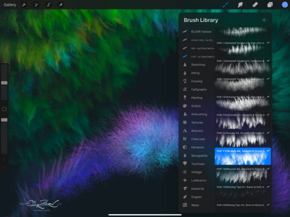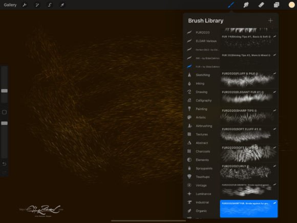 1. FUR_by_EldarZakirov.brushset— the file containing the FUR brushes for Procreate;