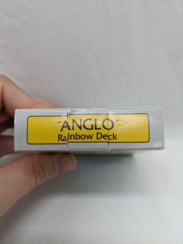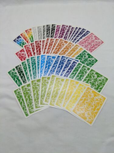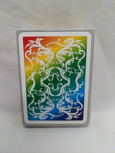 Deck hasn't been used but it's open. The Card backs are a gradient of the rainbow. See pictures please.