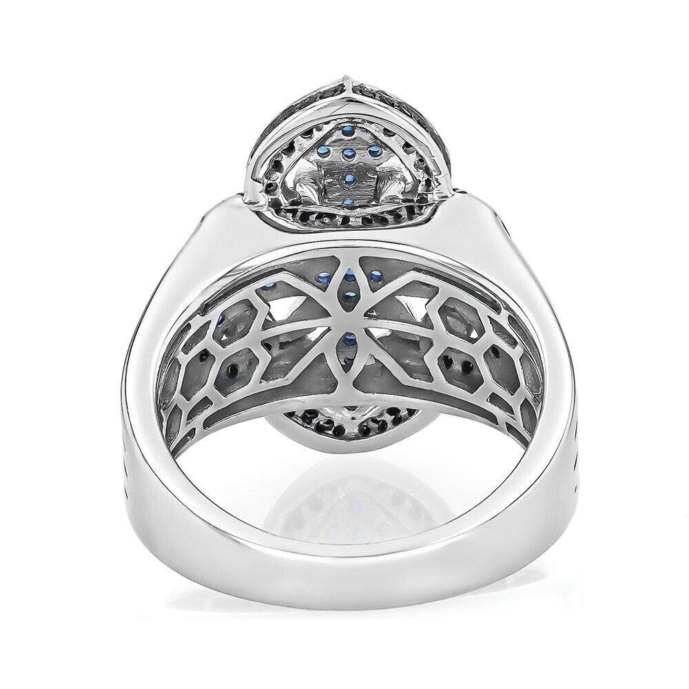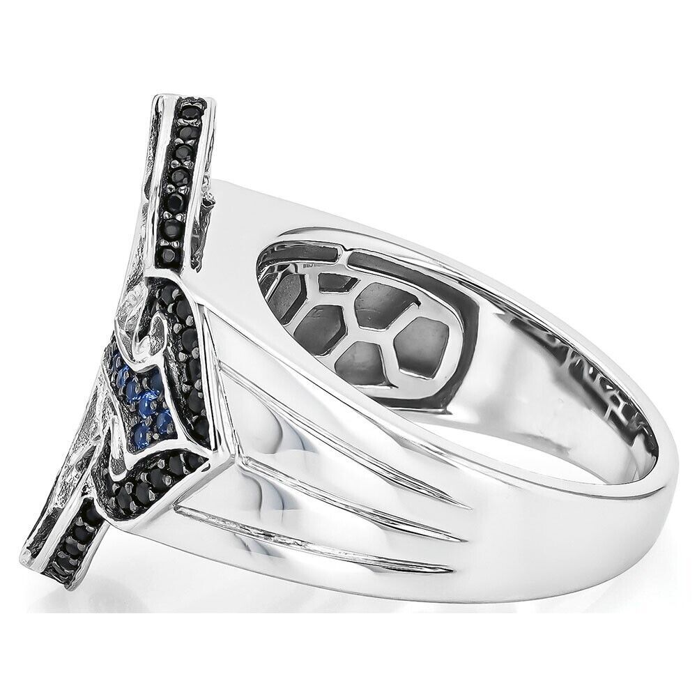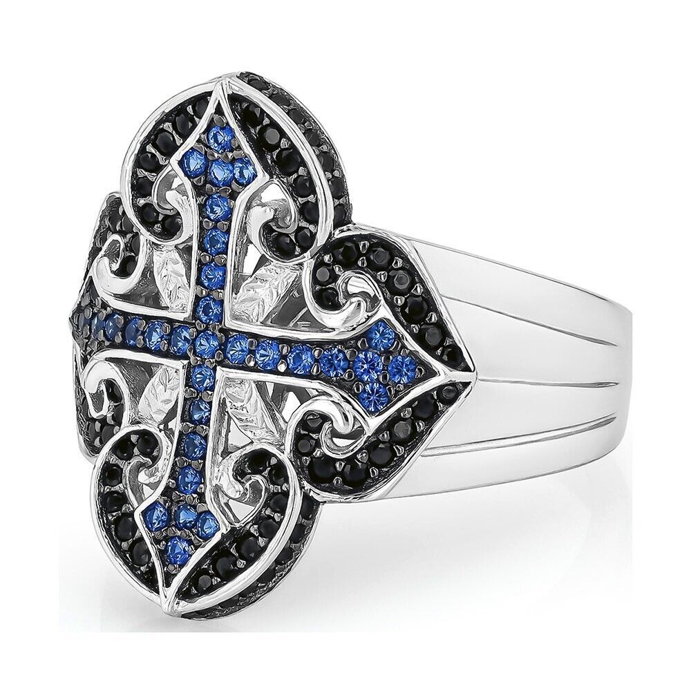 1.11 Ctw Round Cut Blue Sapphire 14K White Gold Plated Cross Band Ring For Men's