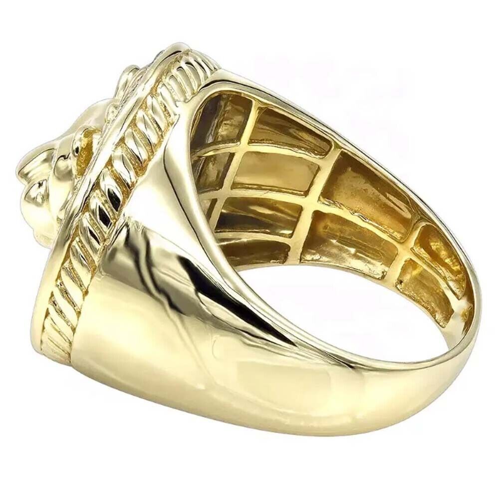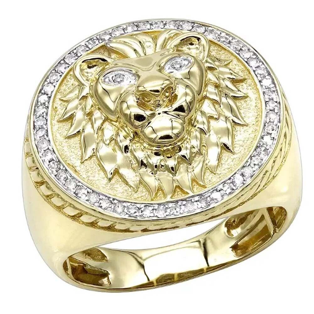 0.30 Ct Brilliant Moissanite 14K Yellow Gold Over Lion Head Band Pinky Mens Ring
