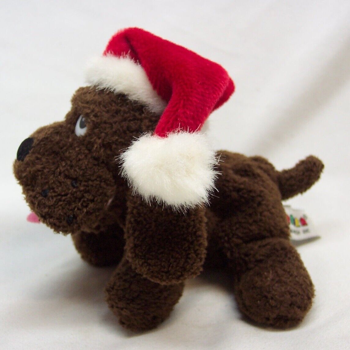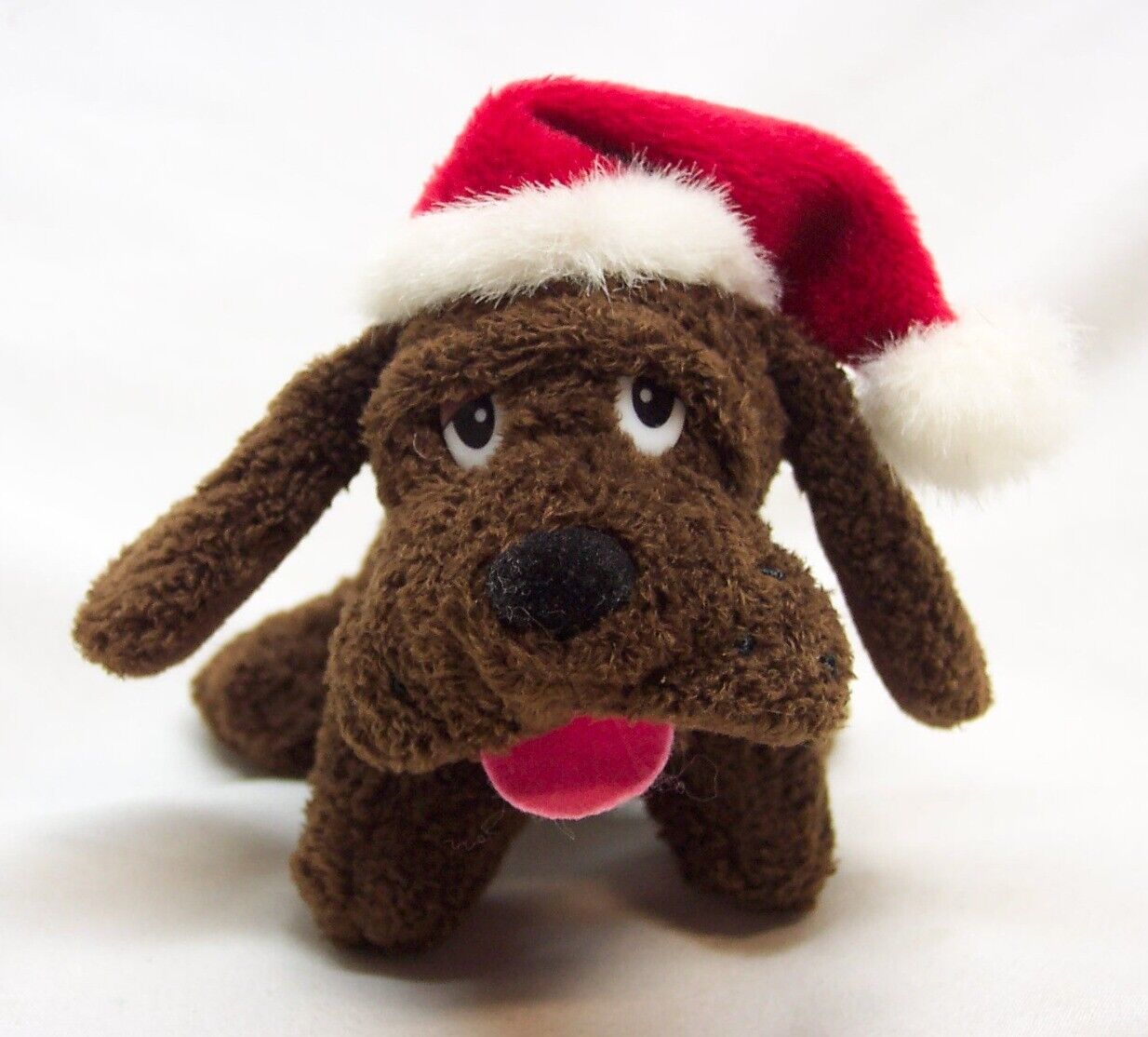 Aurora Christmas MINI BROWN PUPPY DOG W/ SANTA HAT 4" Plush Stuffed Animal Toy
