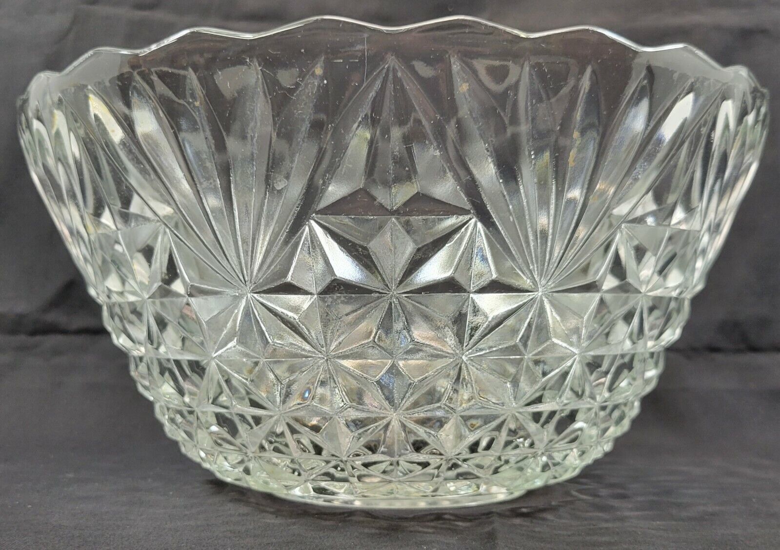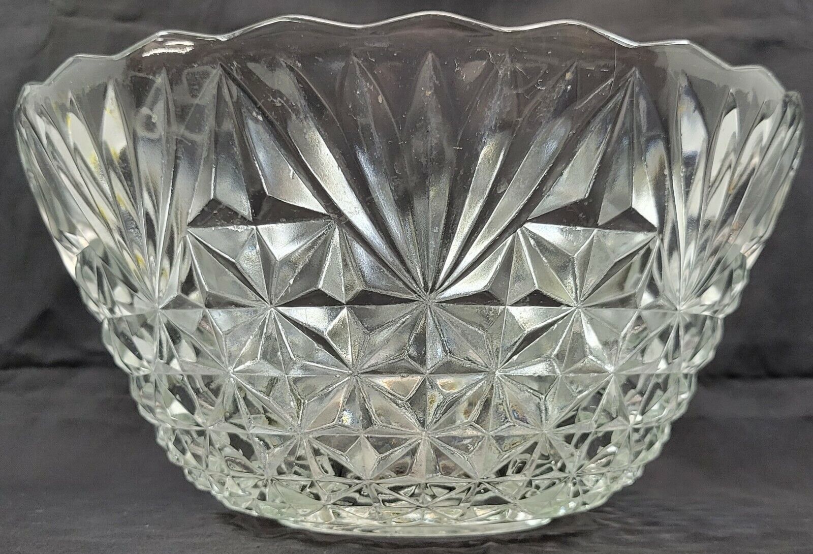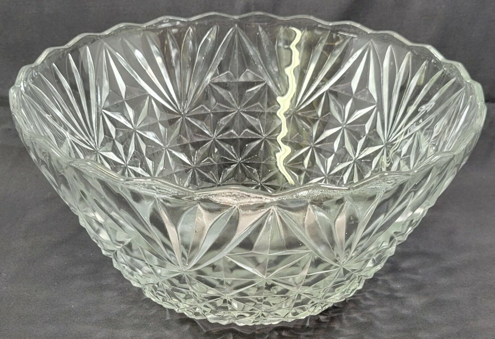 Vintage Large Diamond Design Glass Salad Serving Bowl