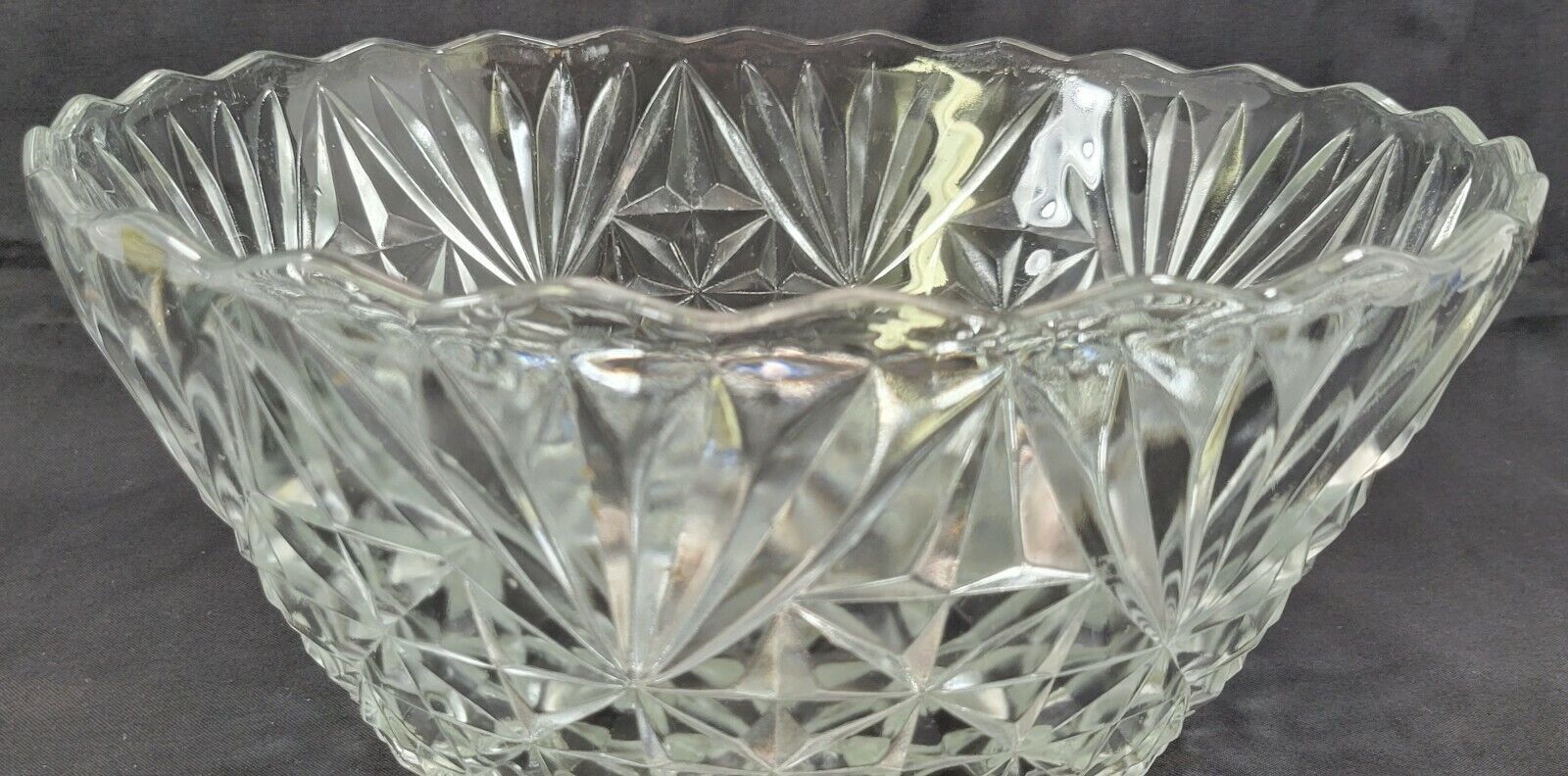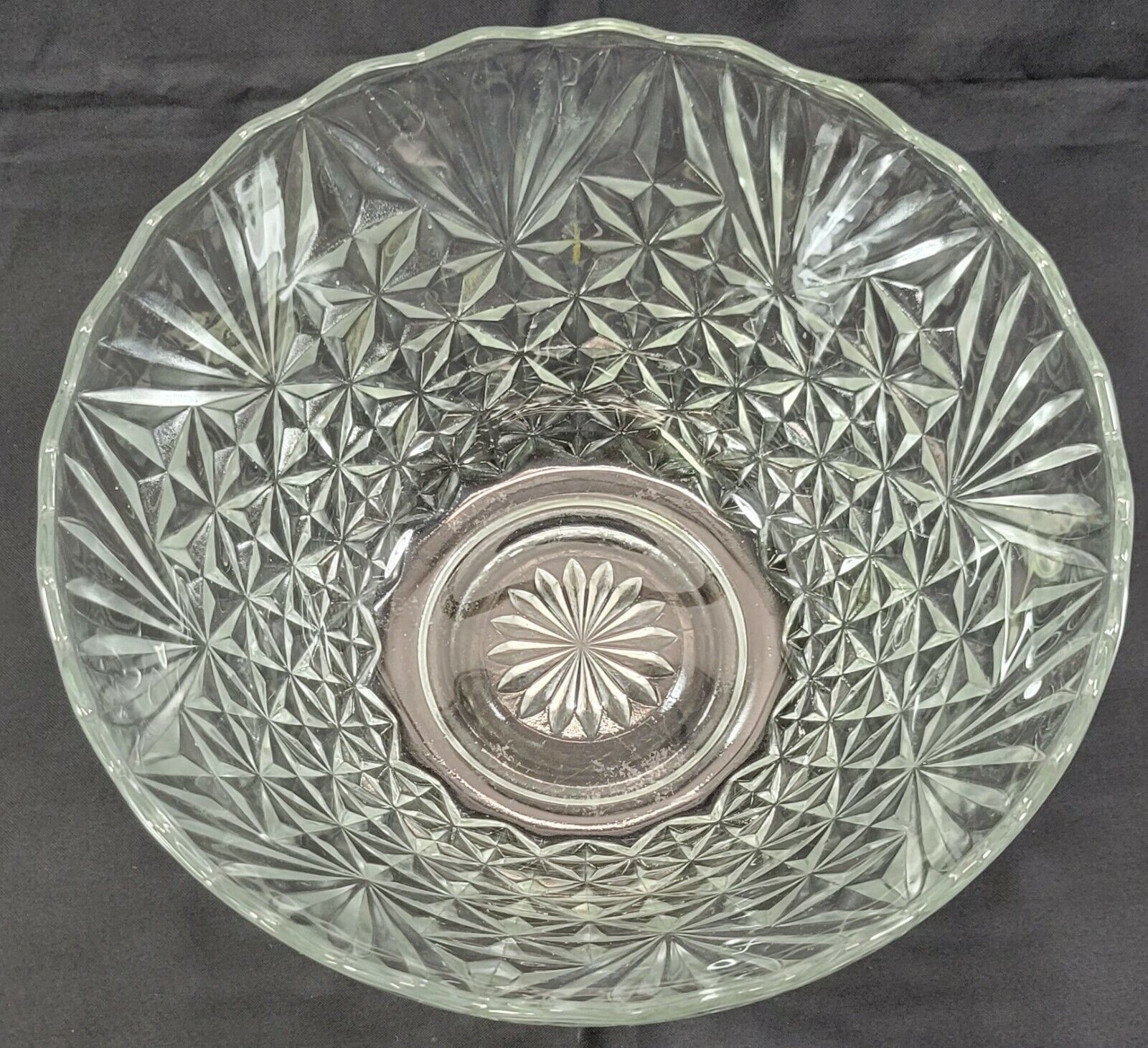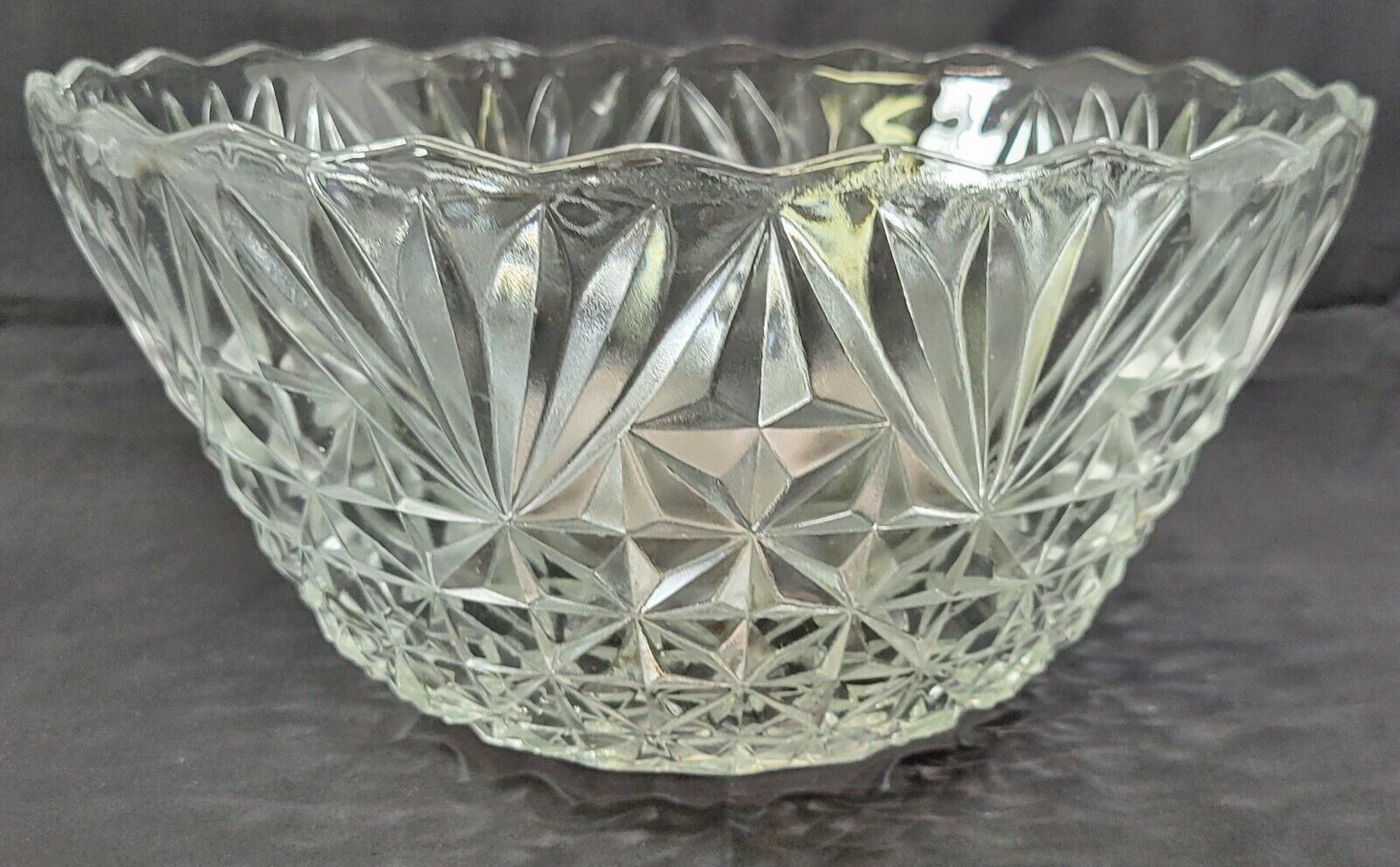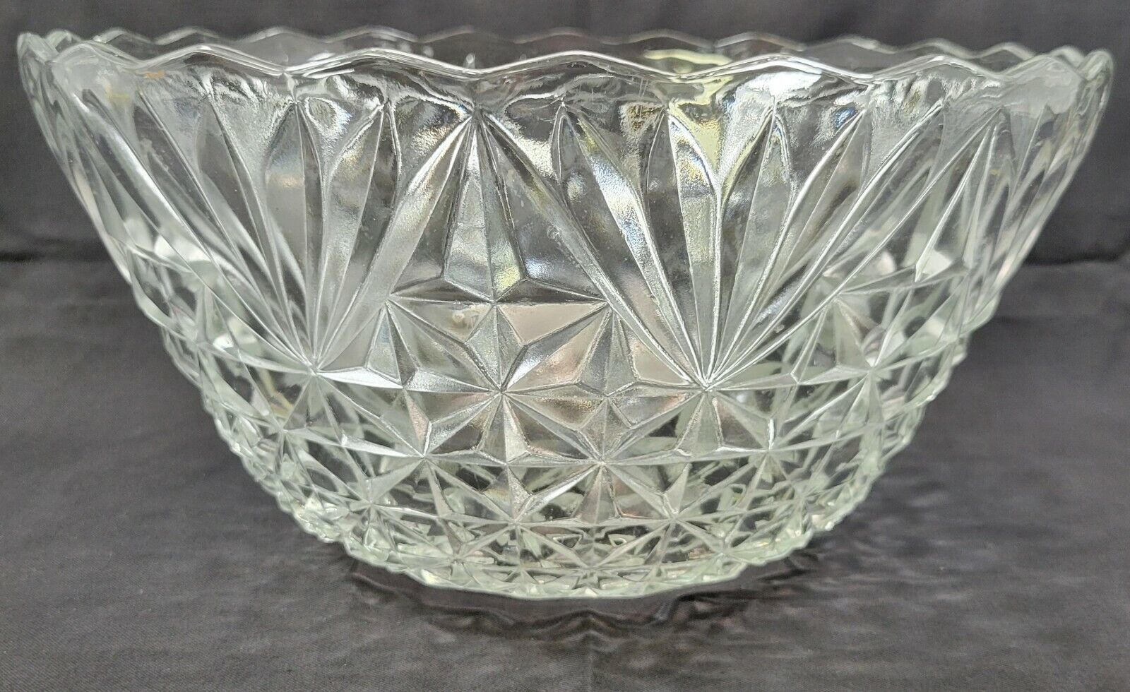 Vintage Large Diamond Design Glass Salad Serving Bowl