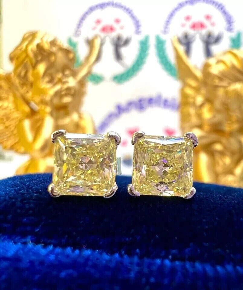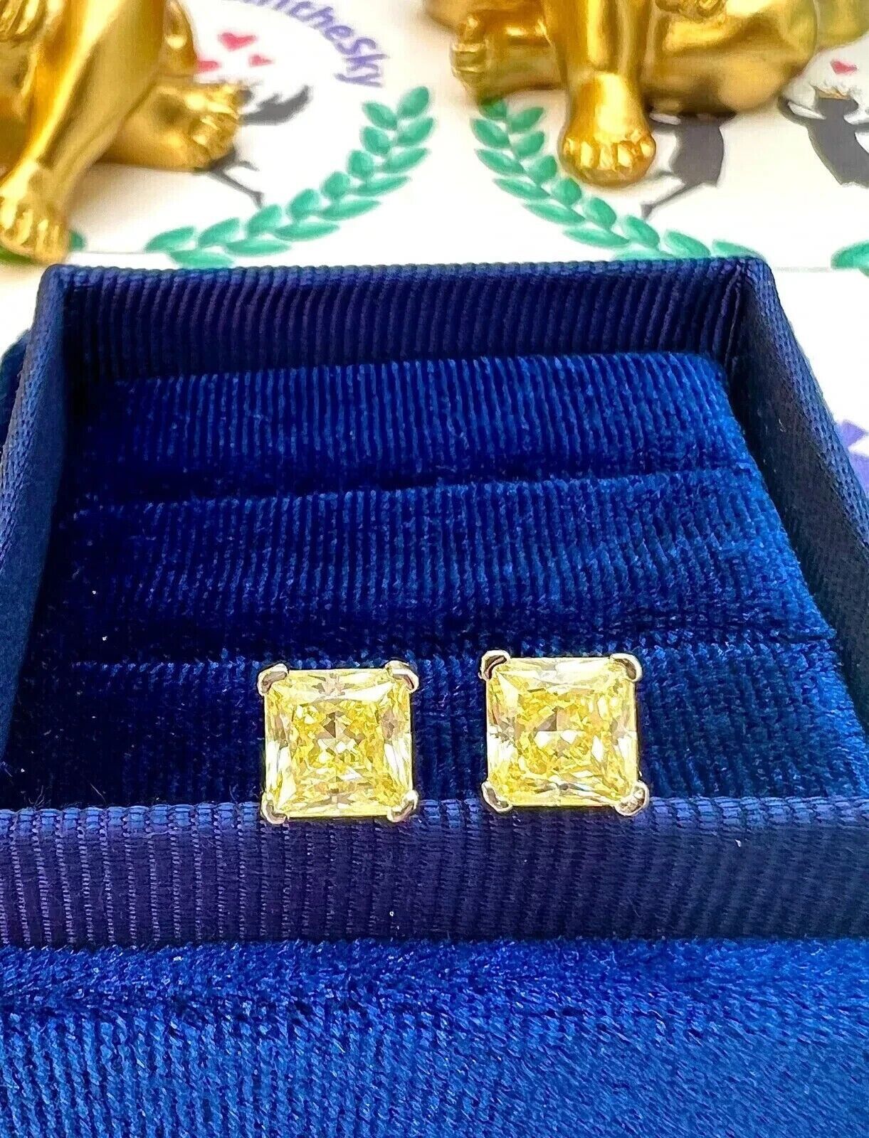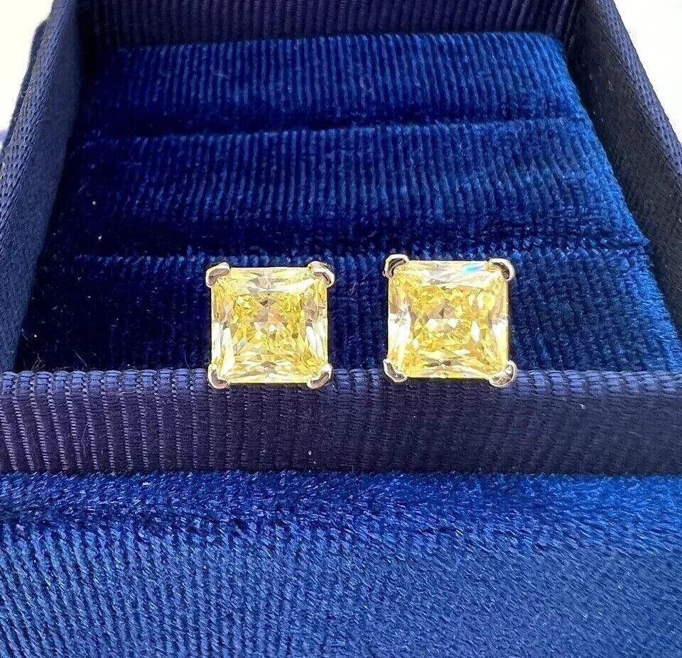 4Ct Princess Cut Lab Created Citrine Solitaire Earrings 14K White Gold Plated
