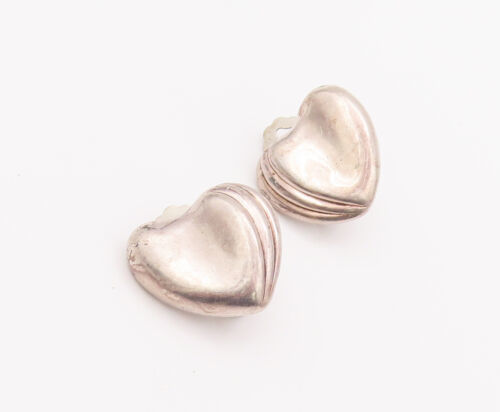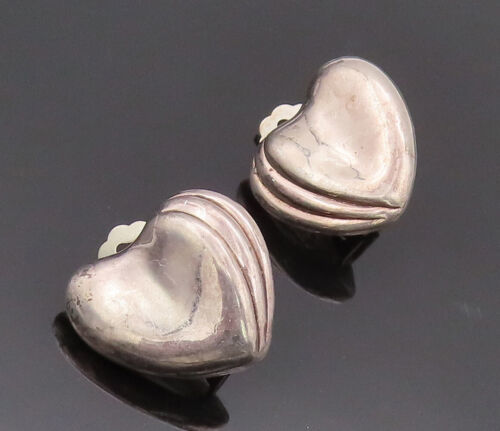 925 Sterling Silver Earrings FREDERIC JEAN DUCLOS Puffed Back Clip Heart EG12834