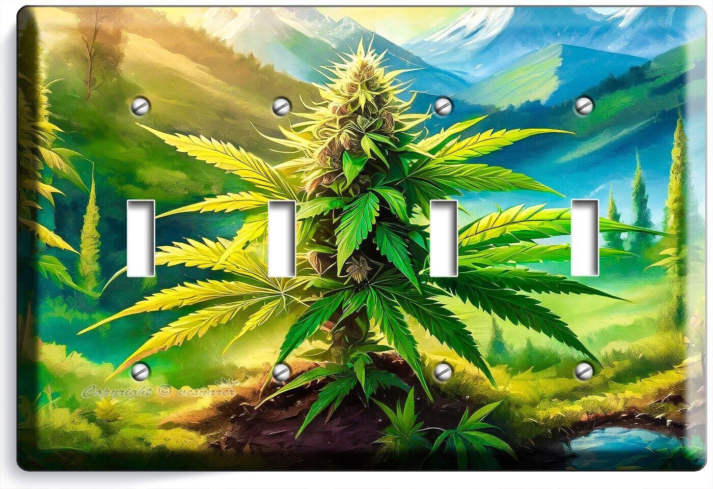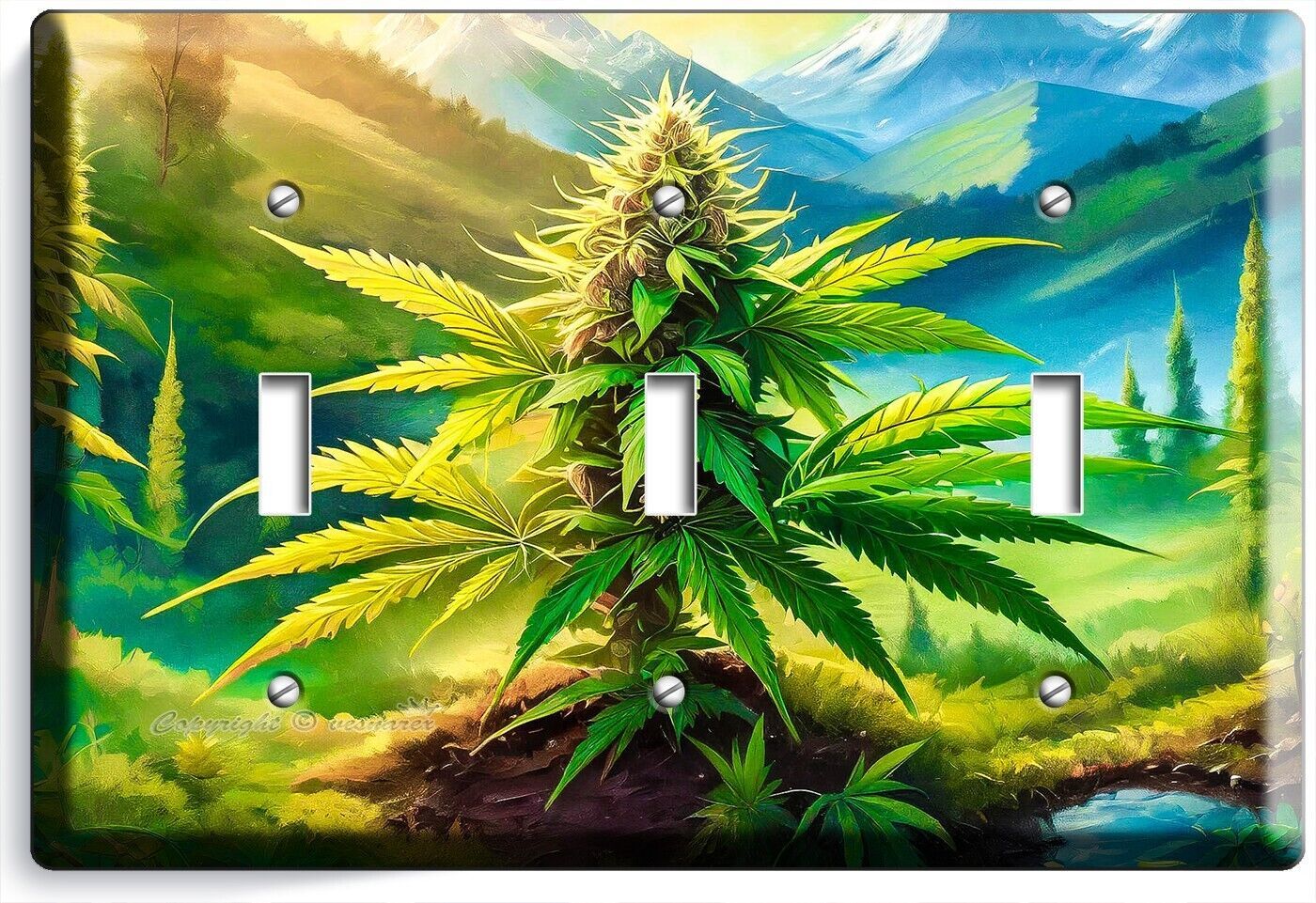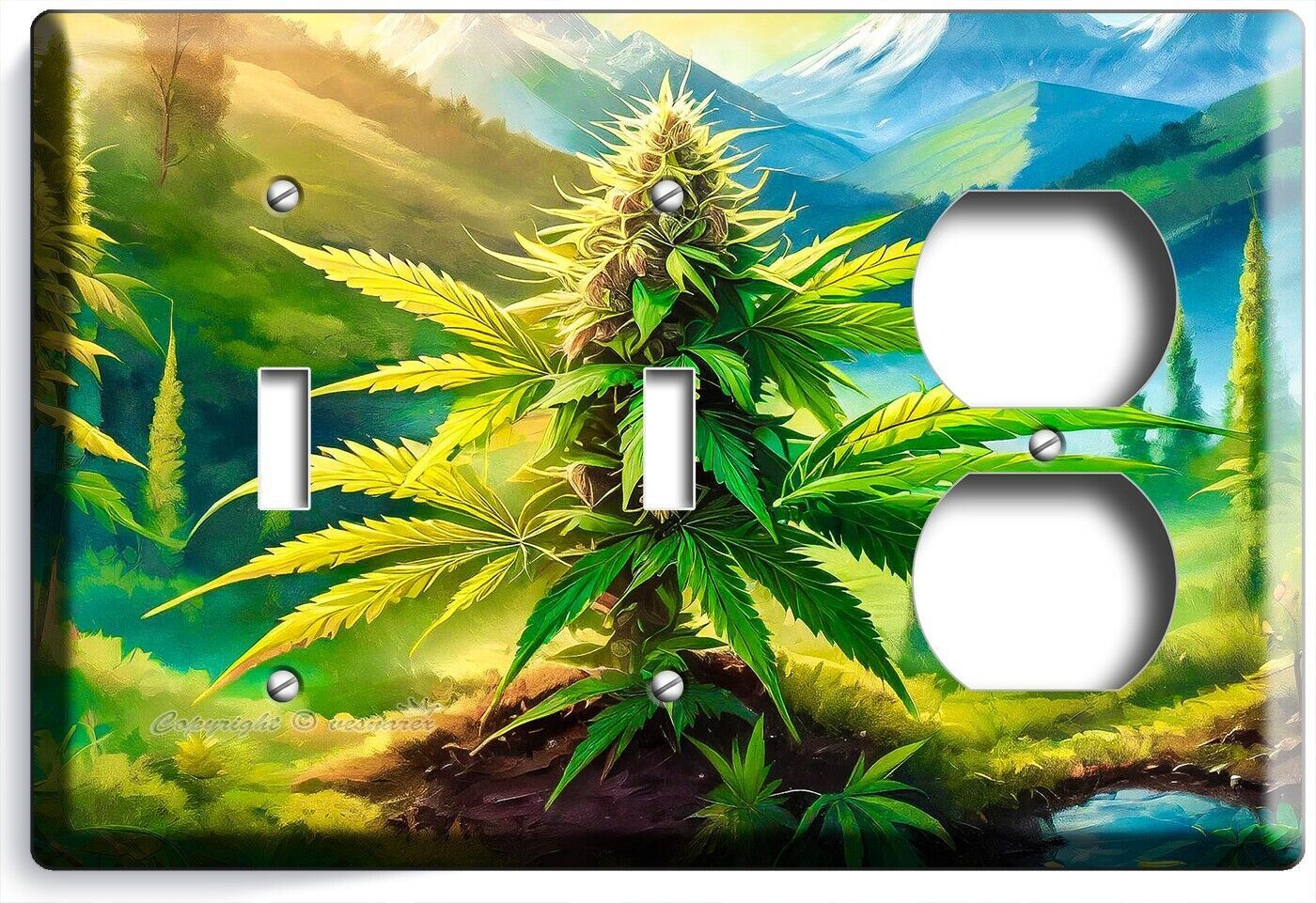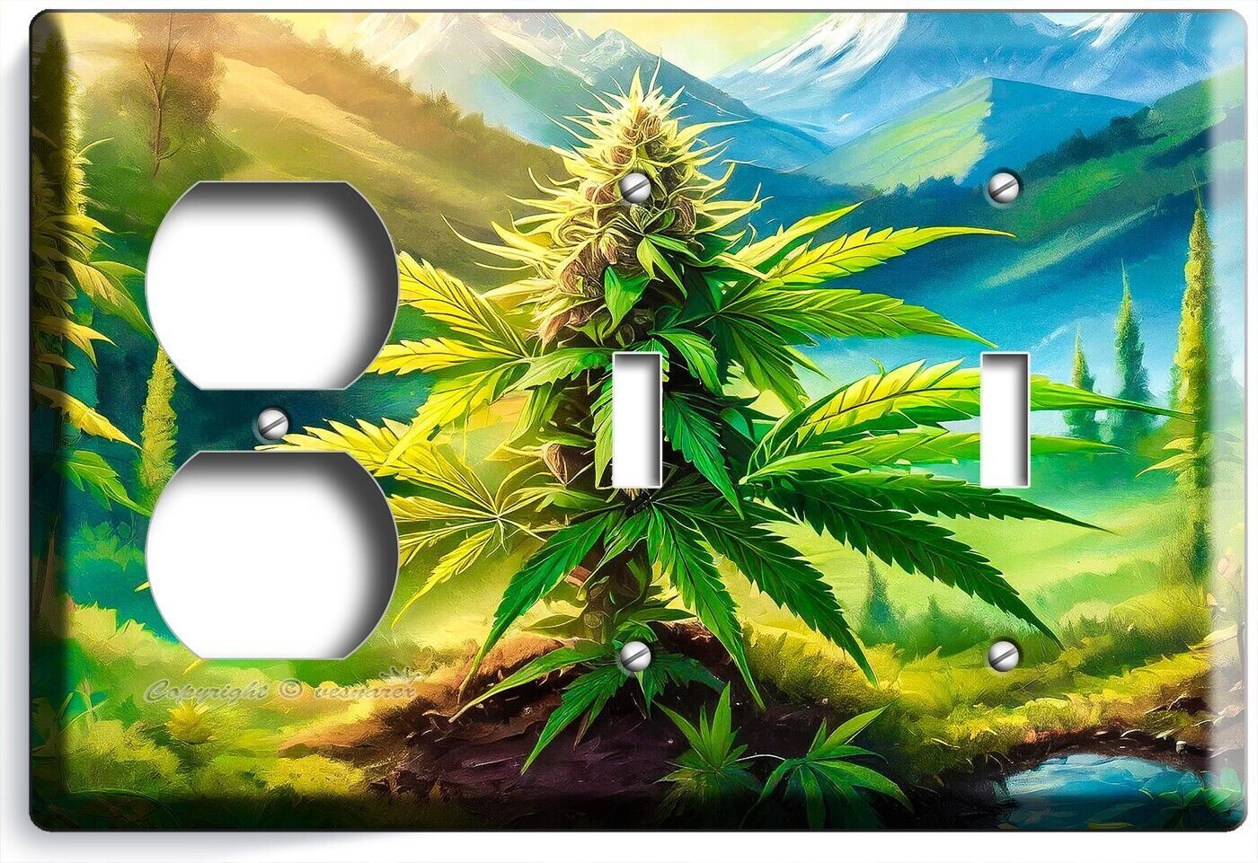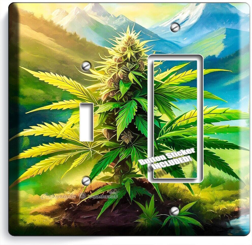 CANNABIS MARIJUANA LEAF MOUNTAINS NATURE LIGHT SWITCH OUTLET WALL PLATE ROOM ART