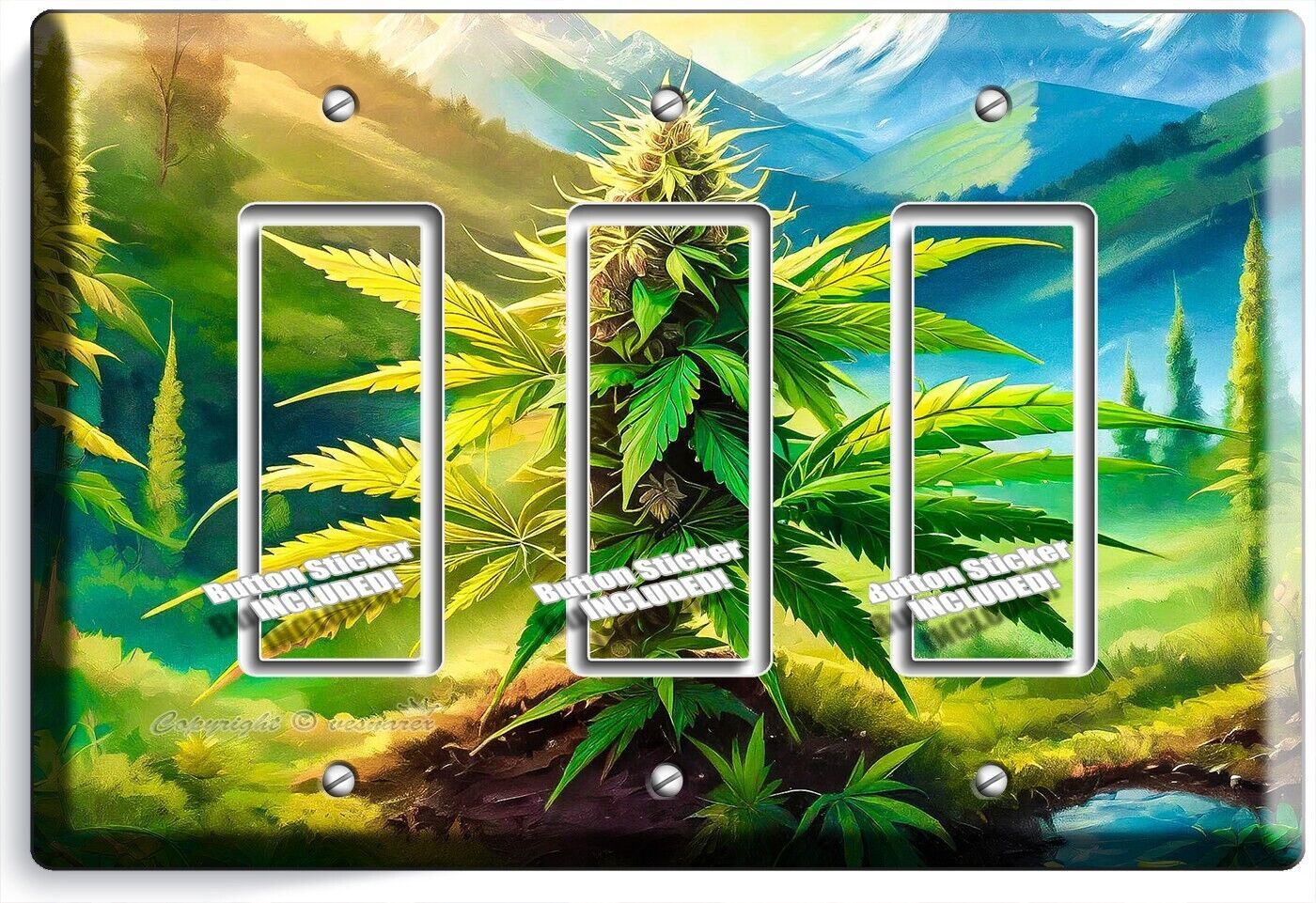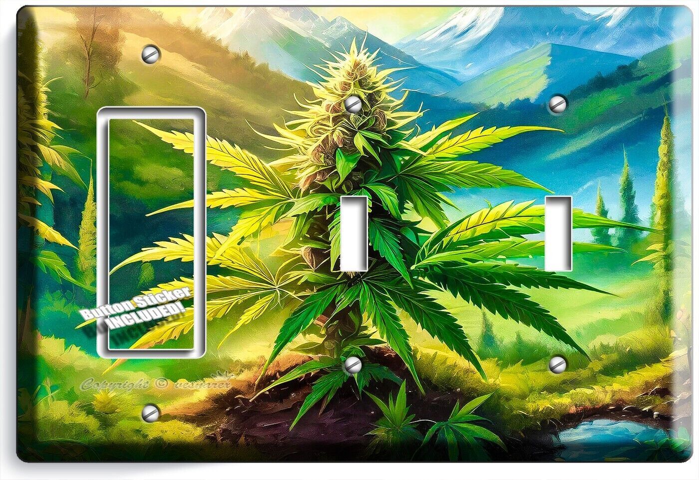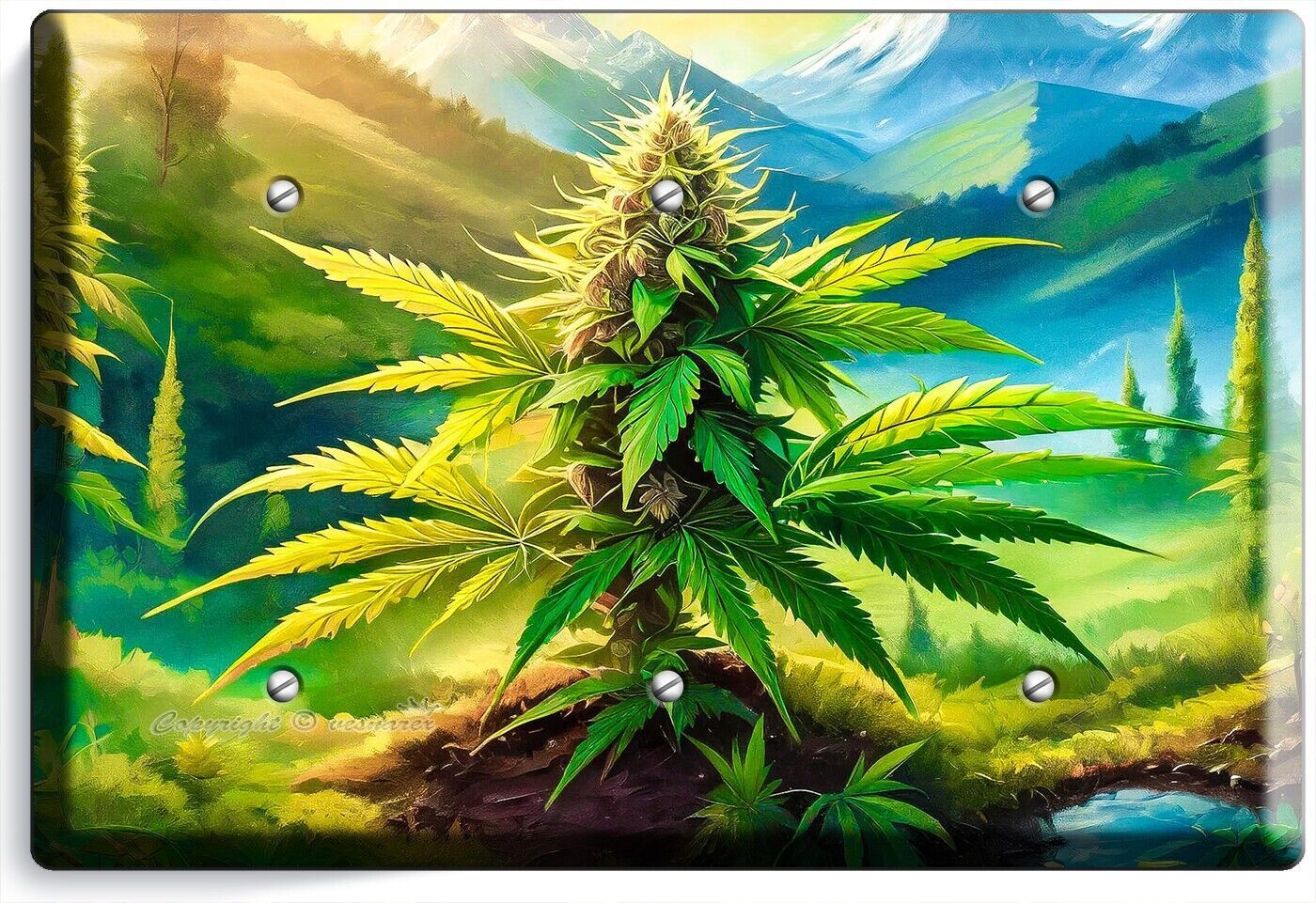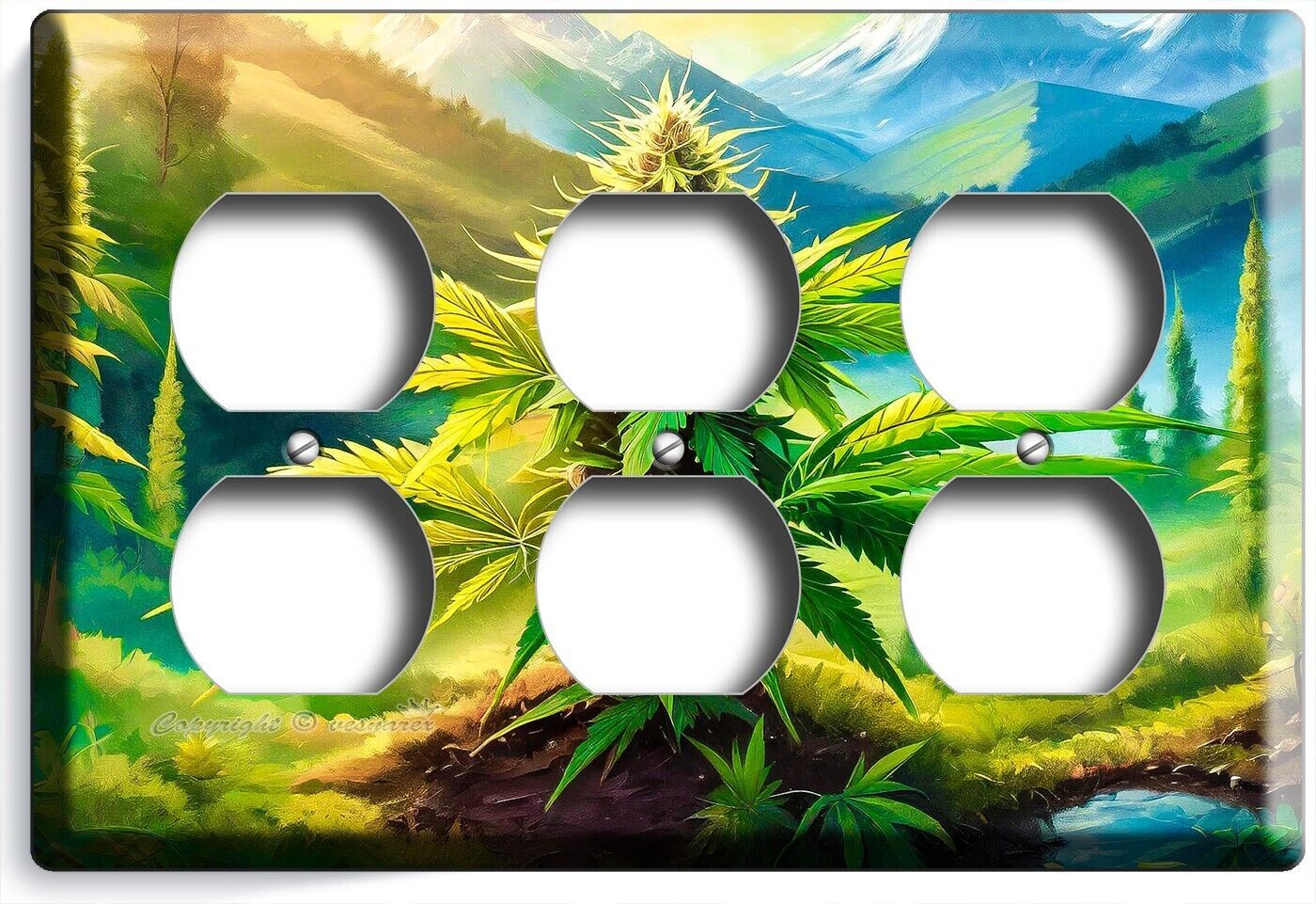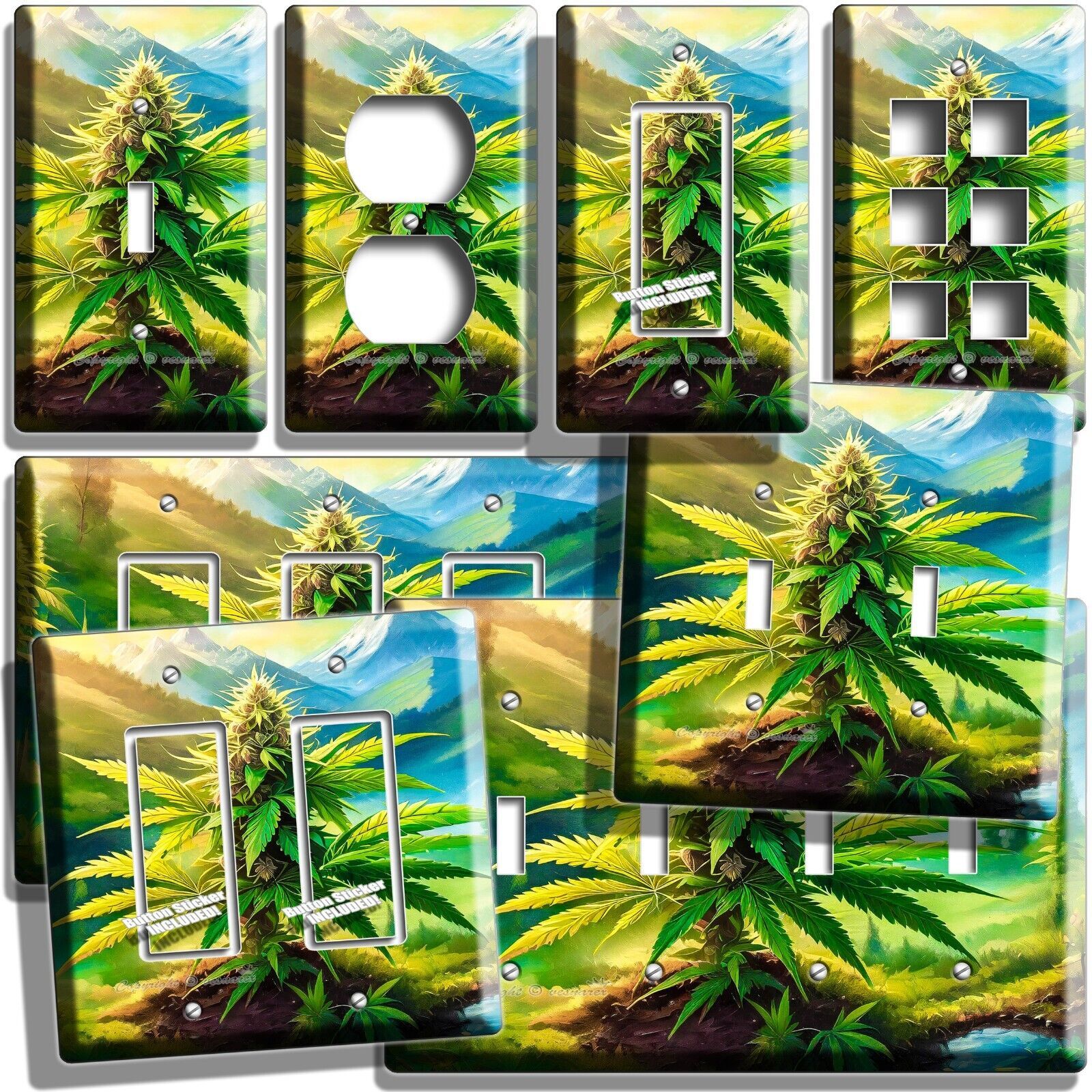 CANNABIS MARIJUANA LEAF MOUNTAINS NATURE LIGHT SWITCH OUTLET WALL PLATE ROOM ART