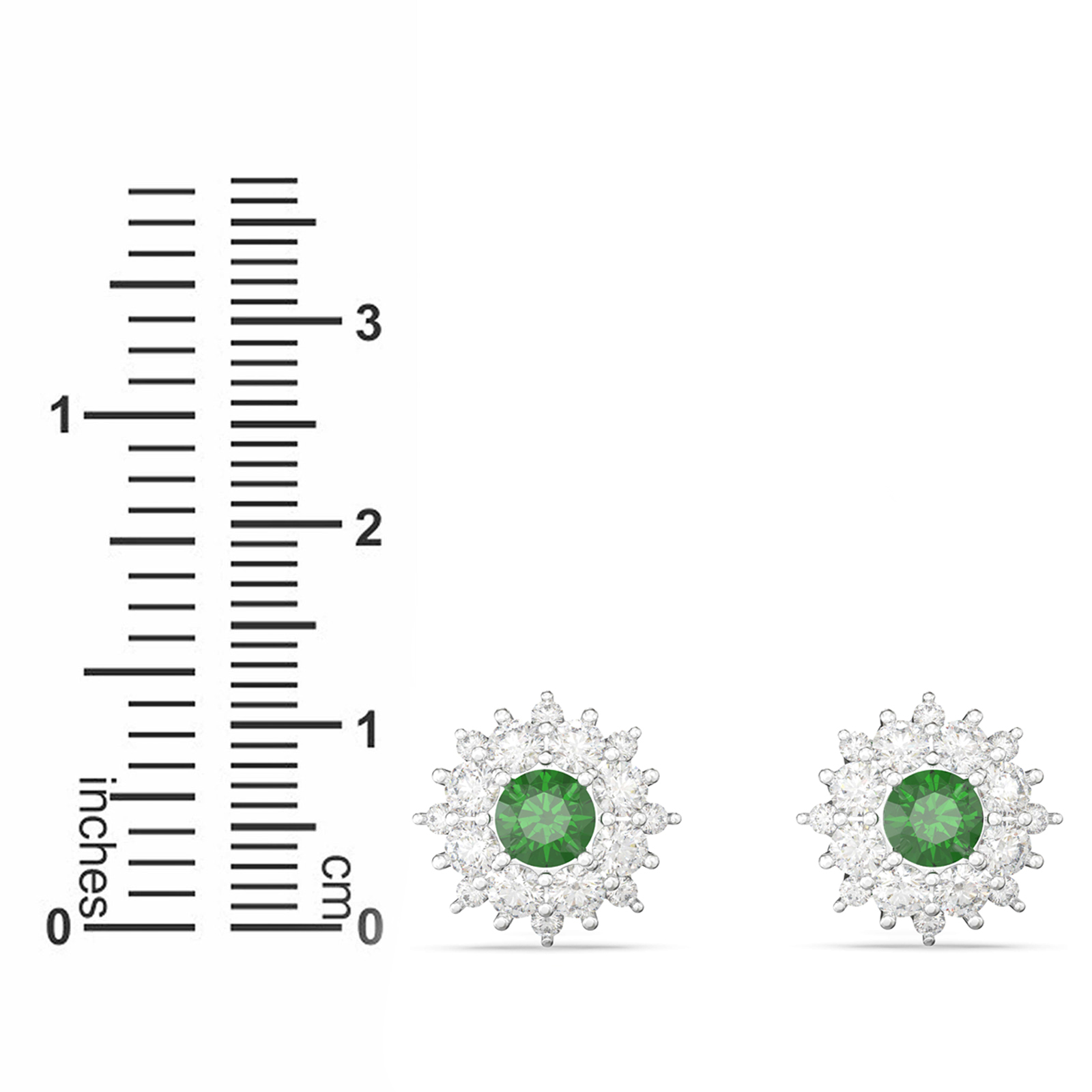 Green Emerald and Lab Grown Diamond Stud Earrings For Women In Sterling Silver