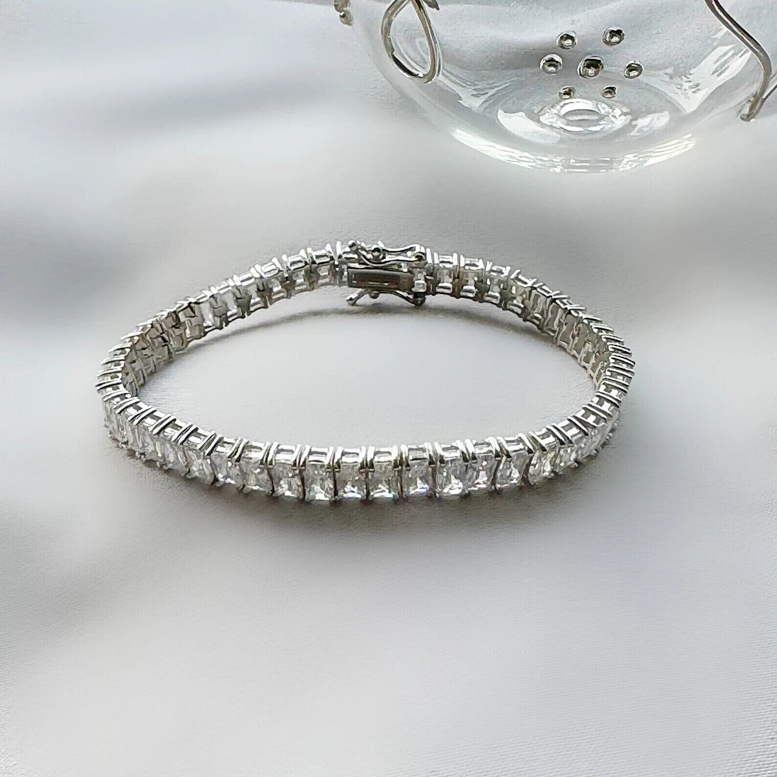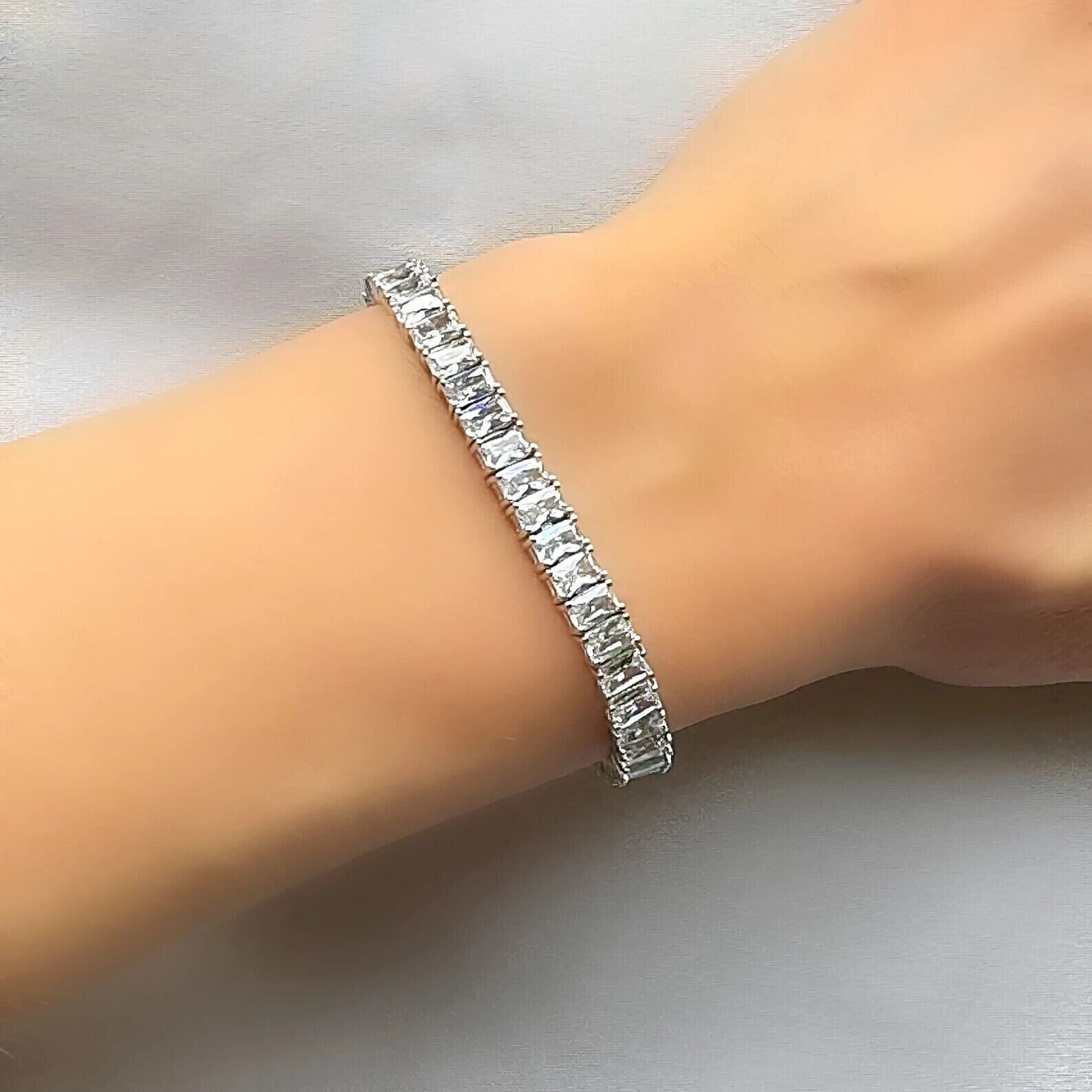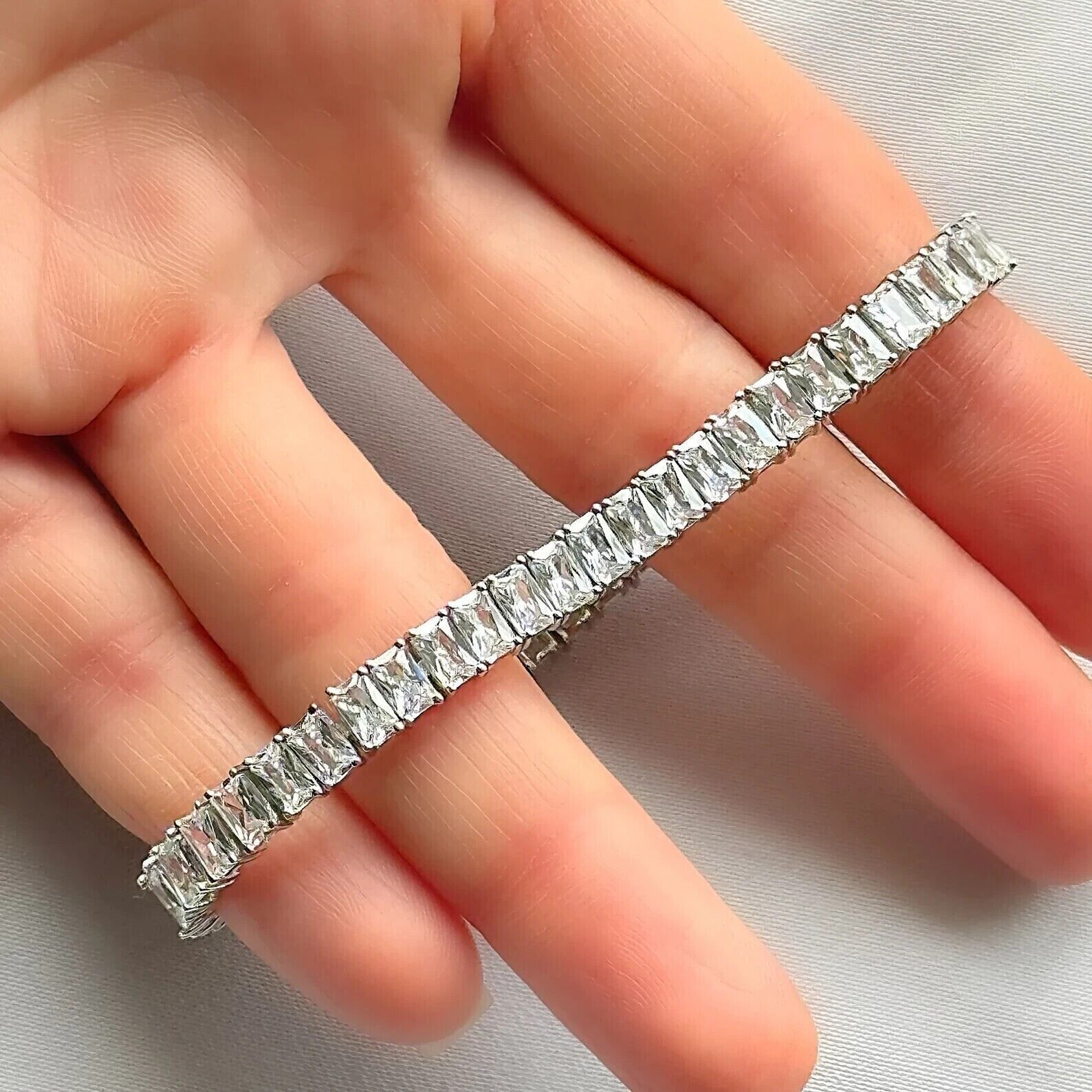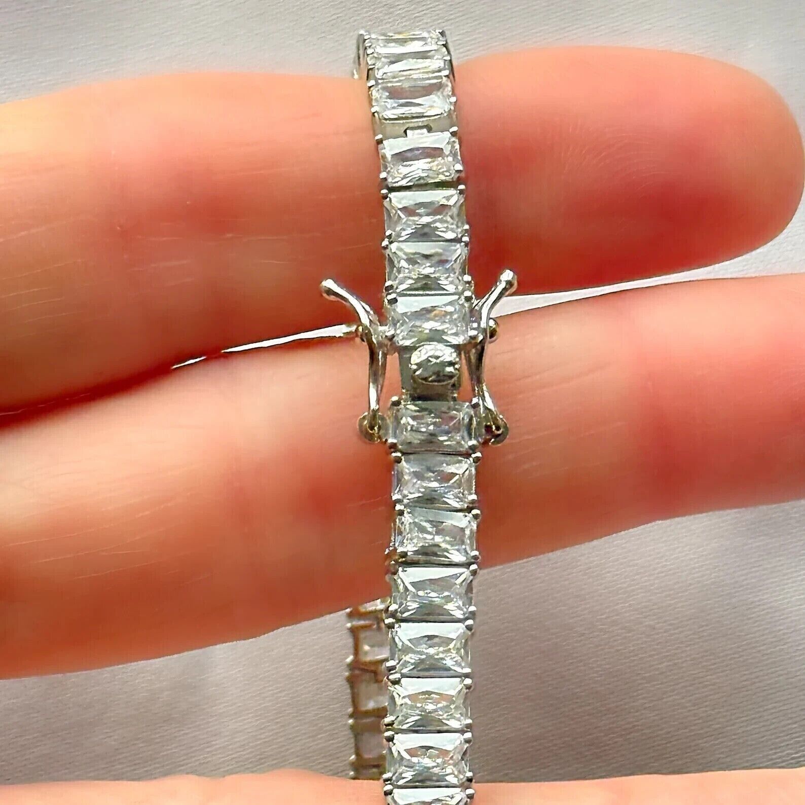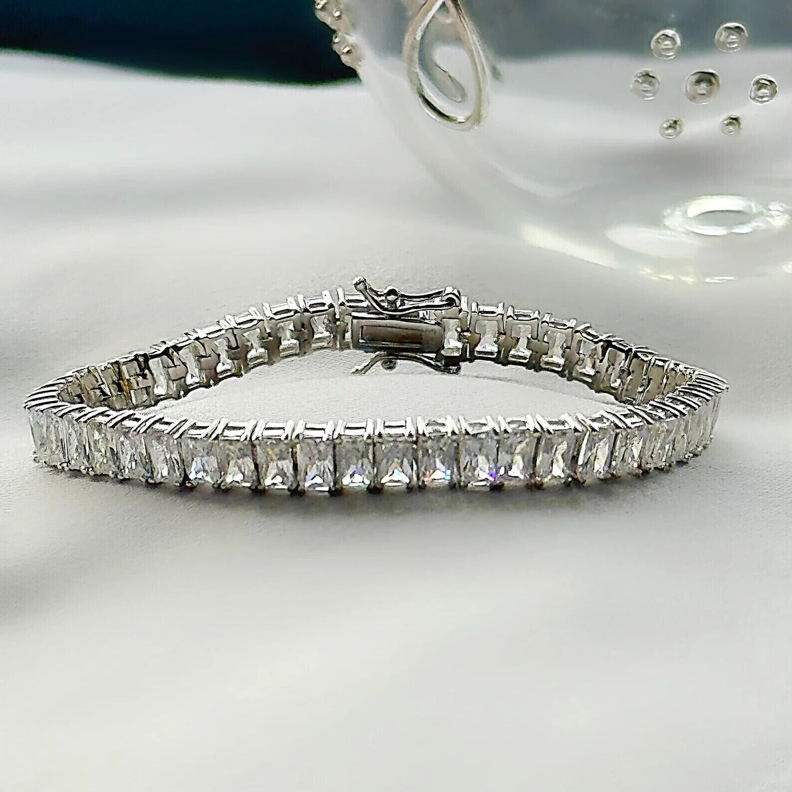 8CT Cushion Cut Lab Created Diamond Tennis Bracelet 14k White Gold Plated 7.5"