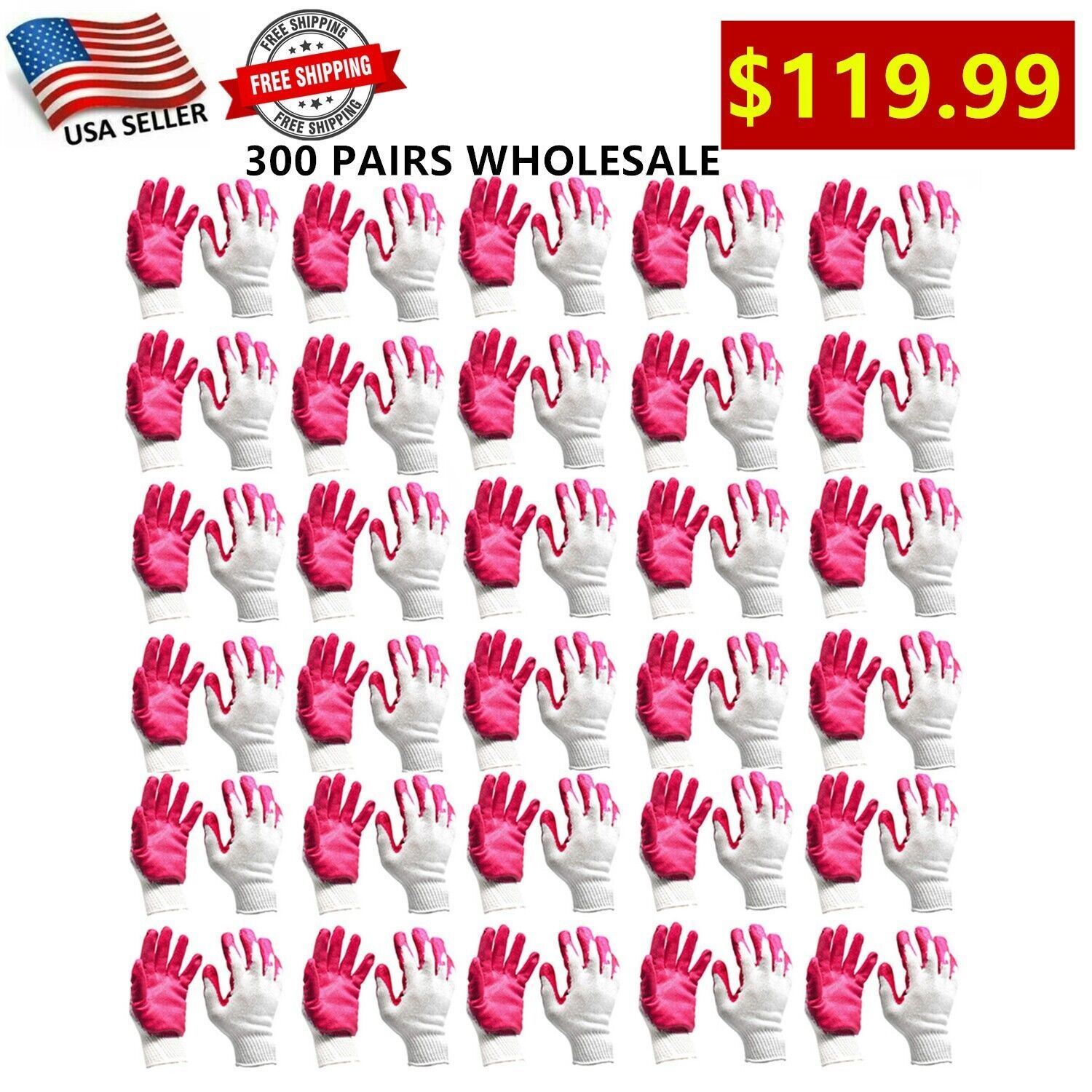 WHOLESALE 300 Pairs Non-Slip Red Latex Rubber Palm Coated Work Safety Gloves