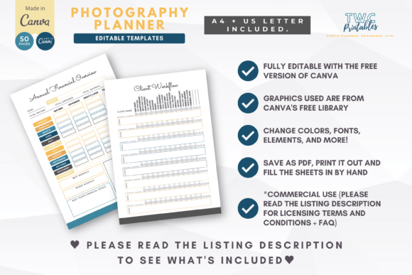 Photography Planner Canva Templates |CEL