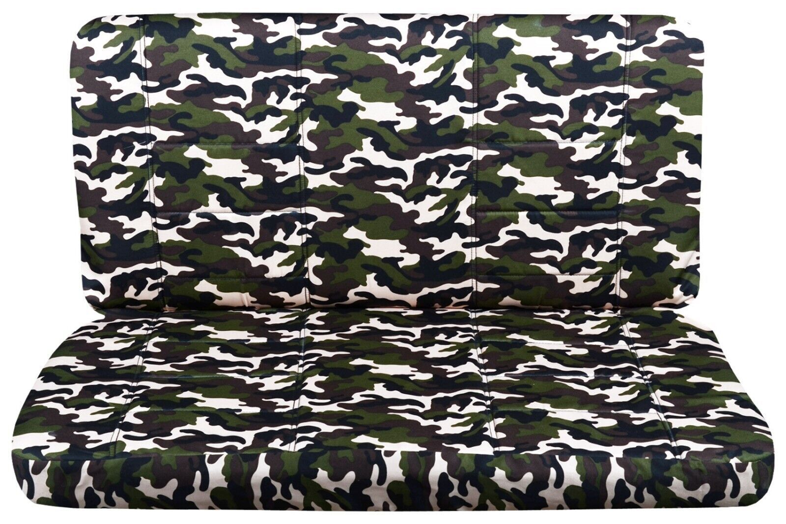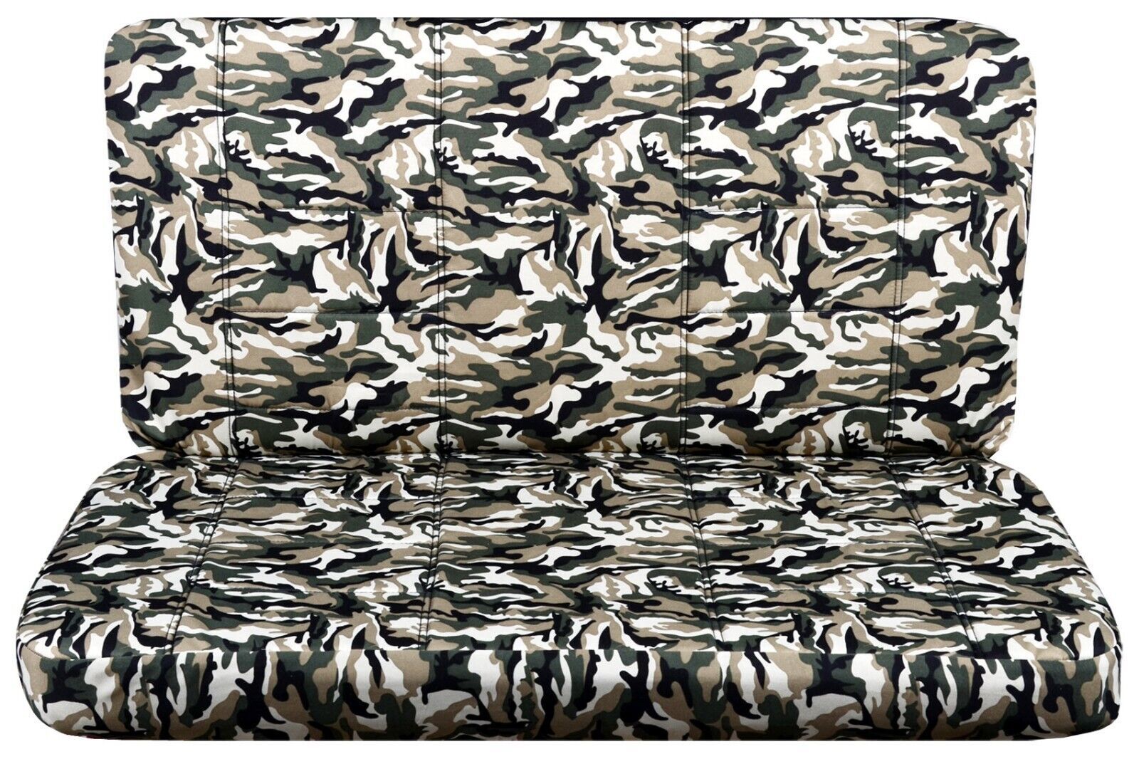 Front bench seat covers made to fit 1966-1972 Ford Bronco pickup camouflage