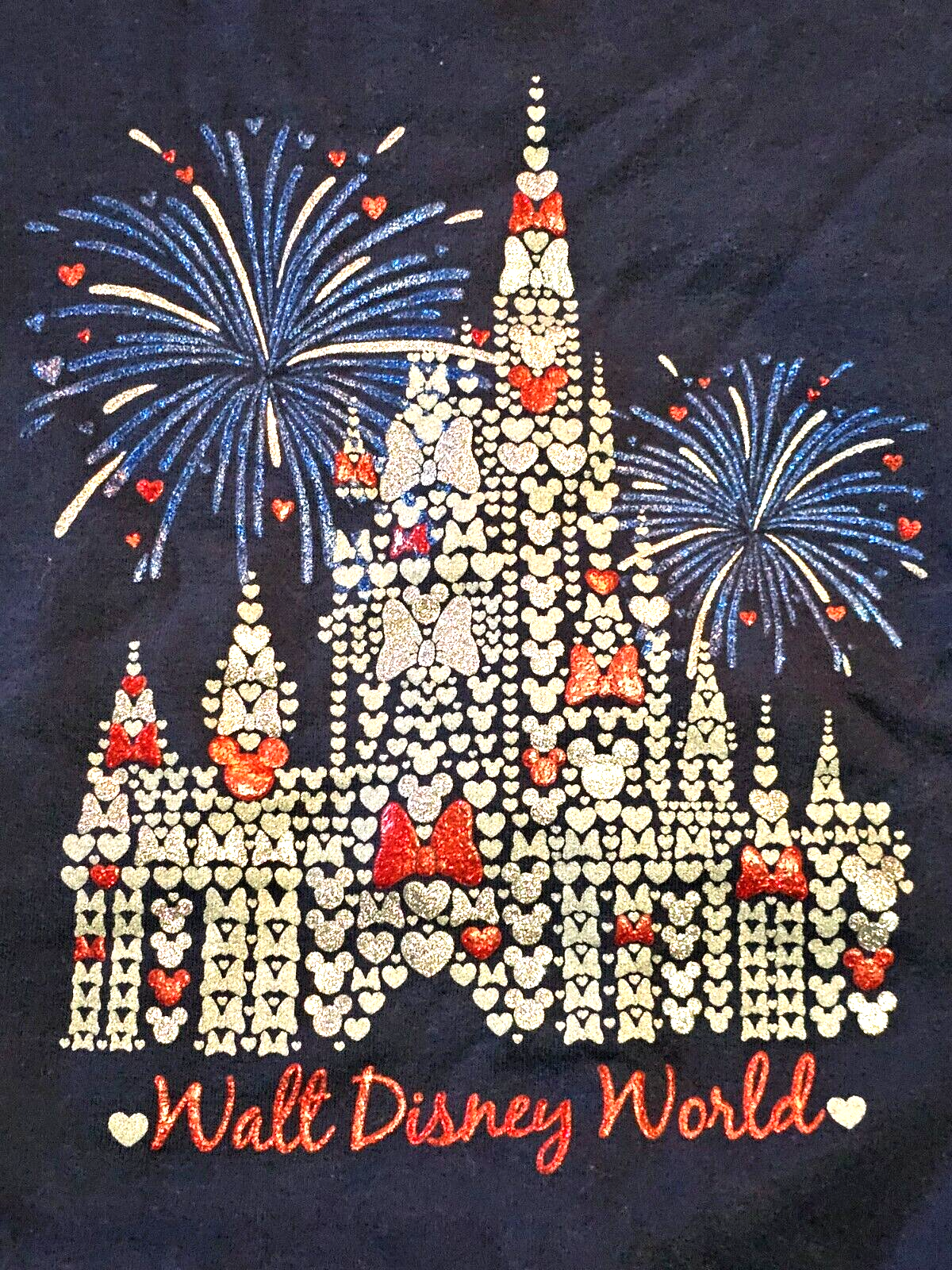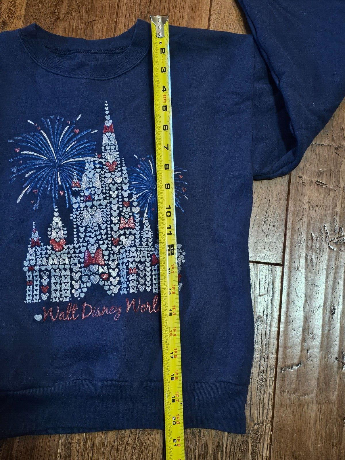 Disney Resort Parks Cinderella Castle Glitter Sparkle Navy Sweatshirt Youth M