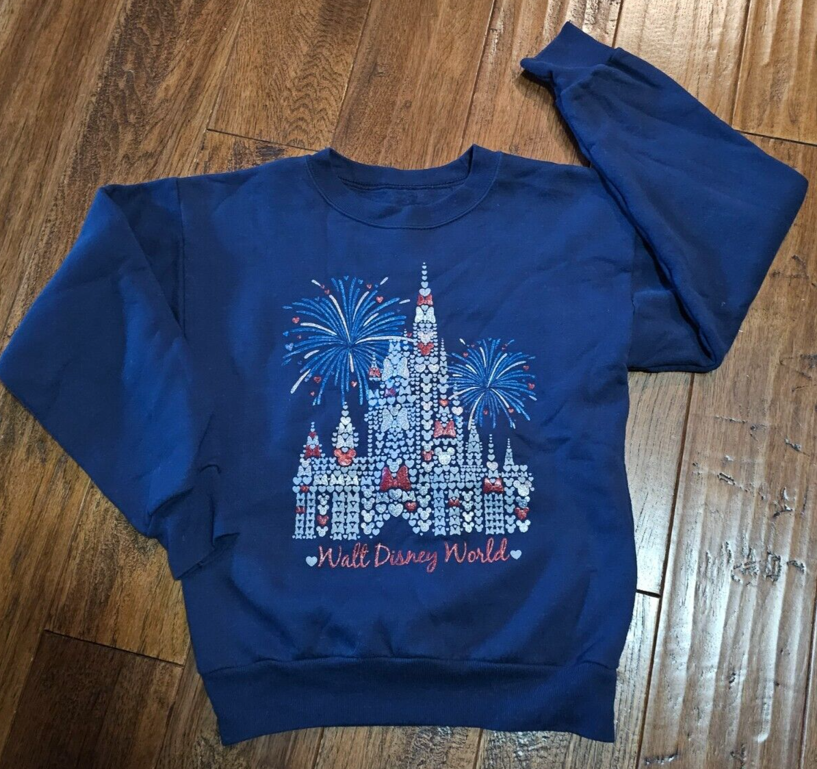 Disney Resort Parks Cinderella Castle Glitter Sparkle Navy Sweatshirt Youth M S2